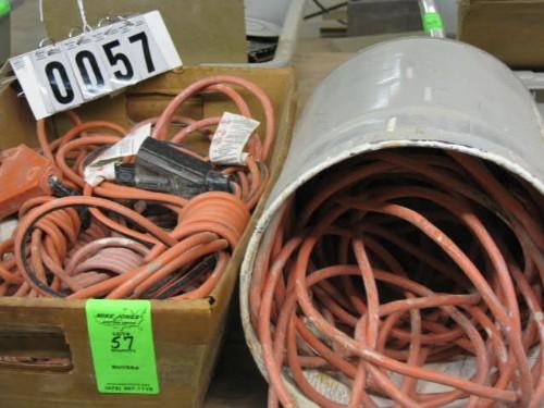 MISC. EXTENSION CORDS IN BOX & BUCKET