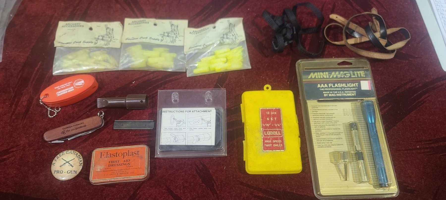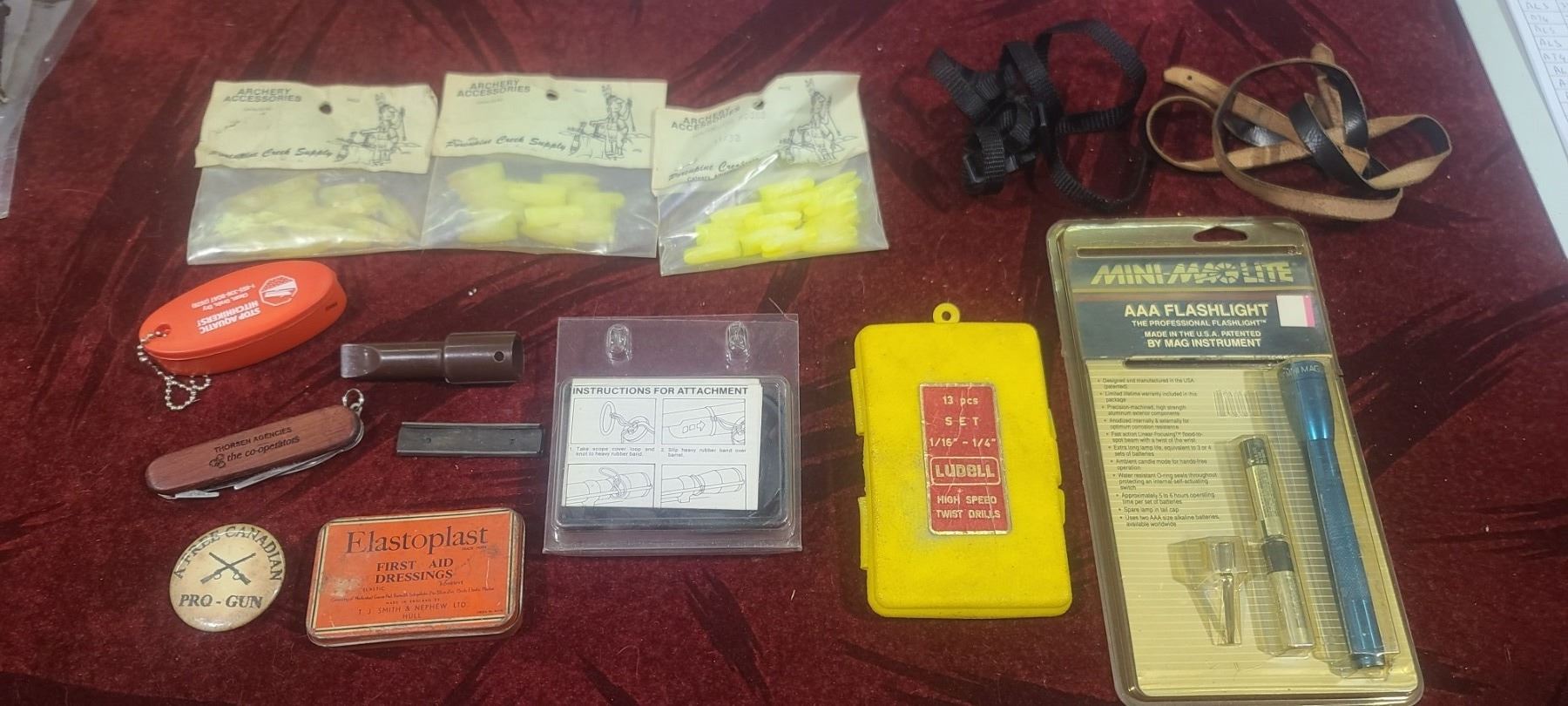MISC. INCLUDING MINI MAG LIGHT, LUDELL BITS, TOAD CALL AND OTHER