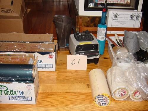 MISC. ON TABLE TOP; SCOOPS, HOT PLATES, BLENDER, MENU BOARD AND RADIO