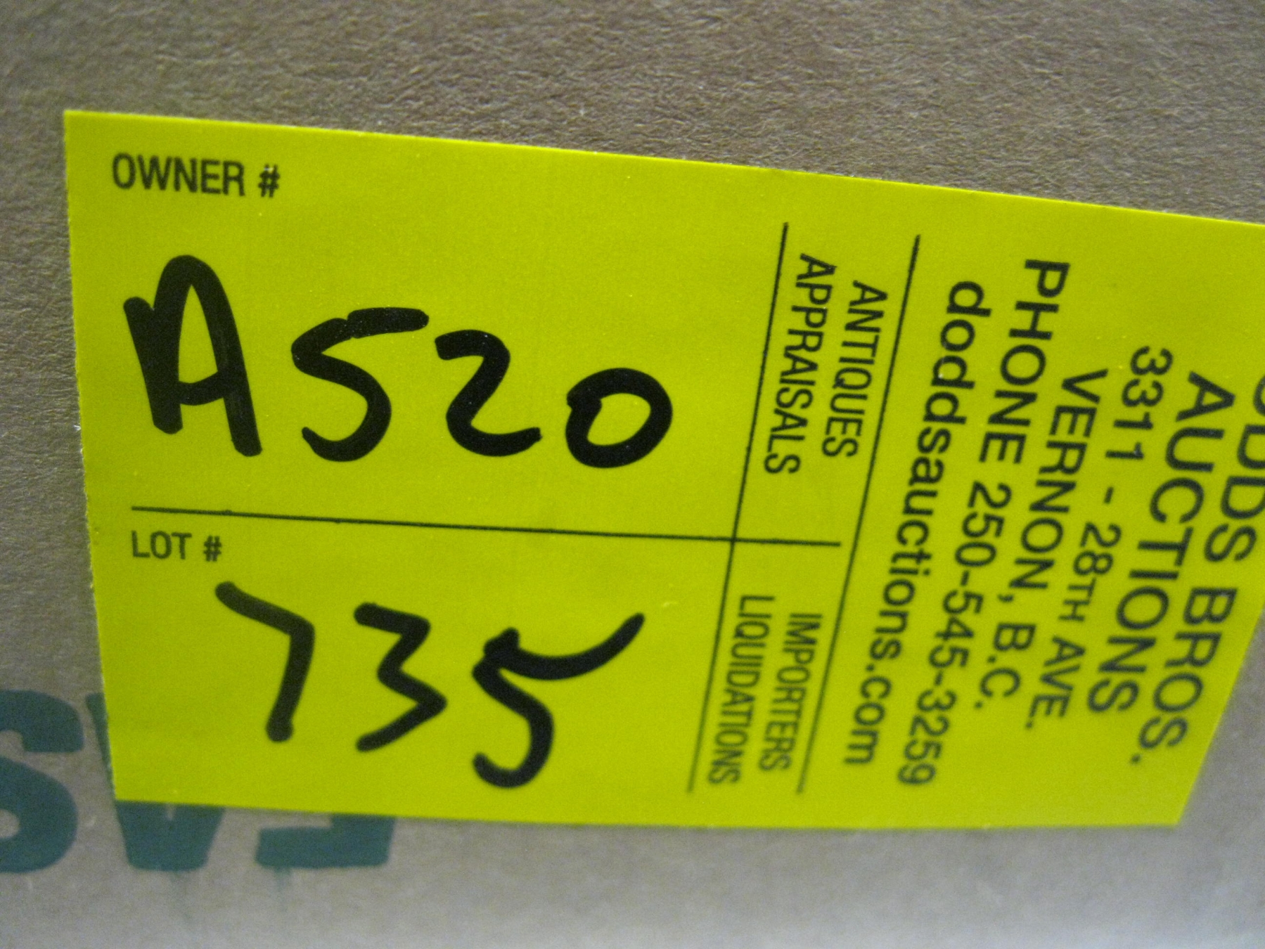 Shipping will be via Canada Post including insurance (unless advised otherwise) at the rate of $2.75/$100 and costs will be determined after the auction and charged to the credit card you registered with on Live Auction World. Dodds Auction is not responsible for any damage incurred through shipping. We DO NOT provide shipping quotes.