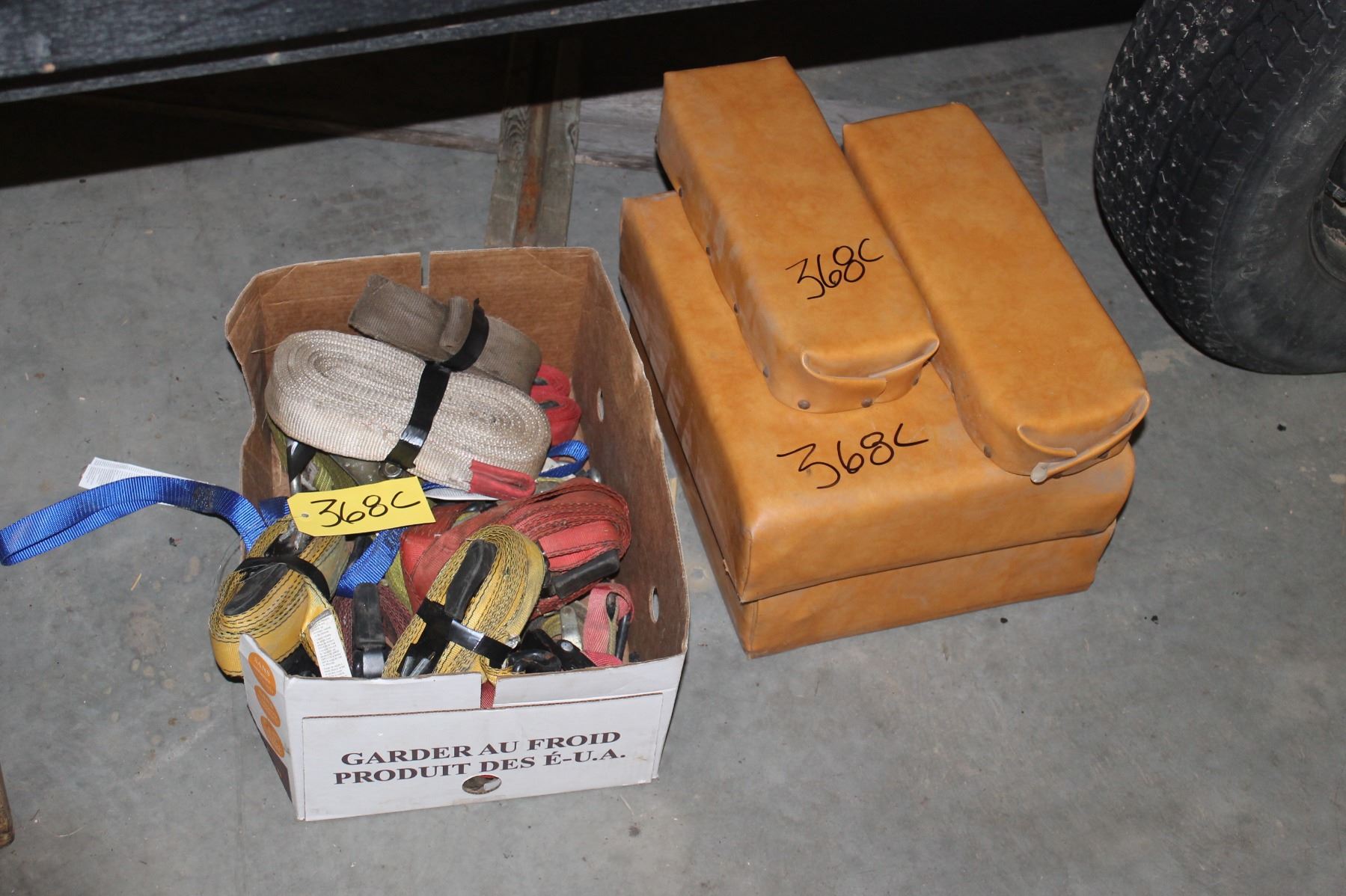 MISCELLANEOUS BOX OF STRAPS, SLINGS & 2 SEATS