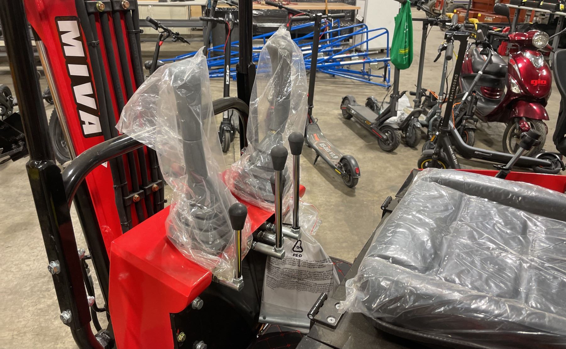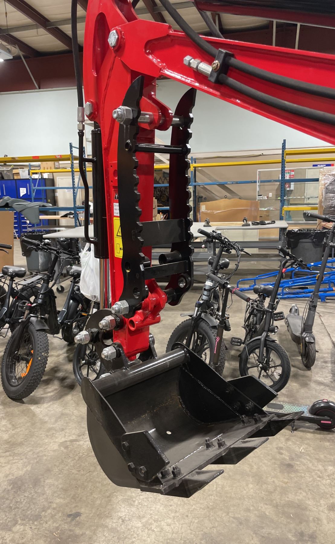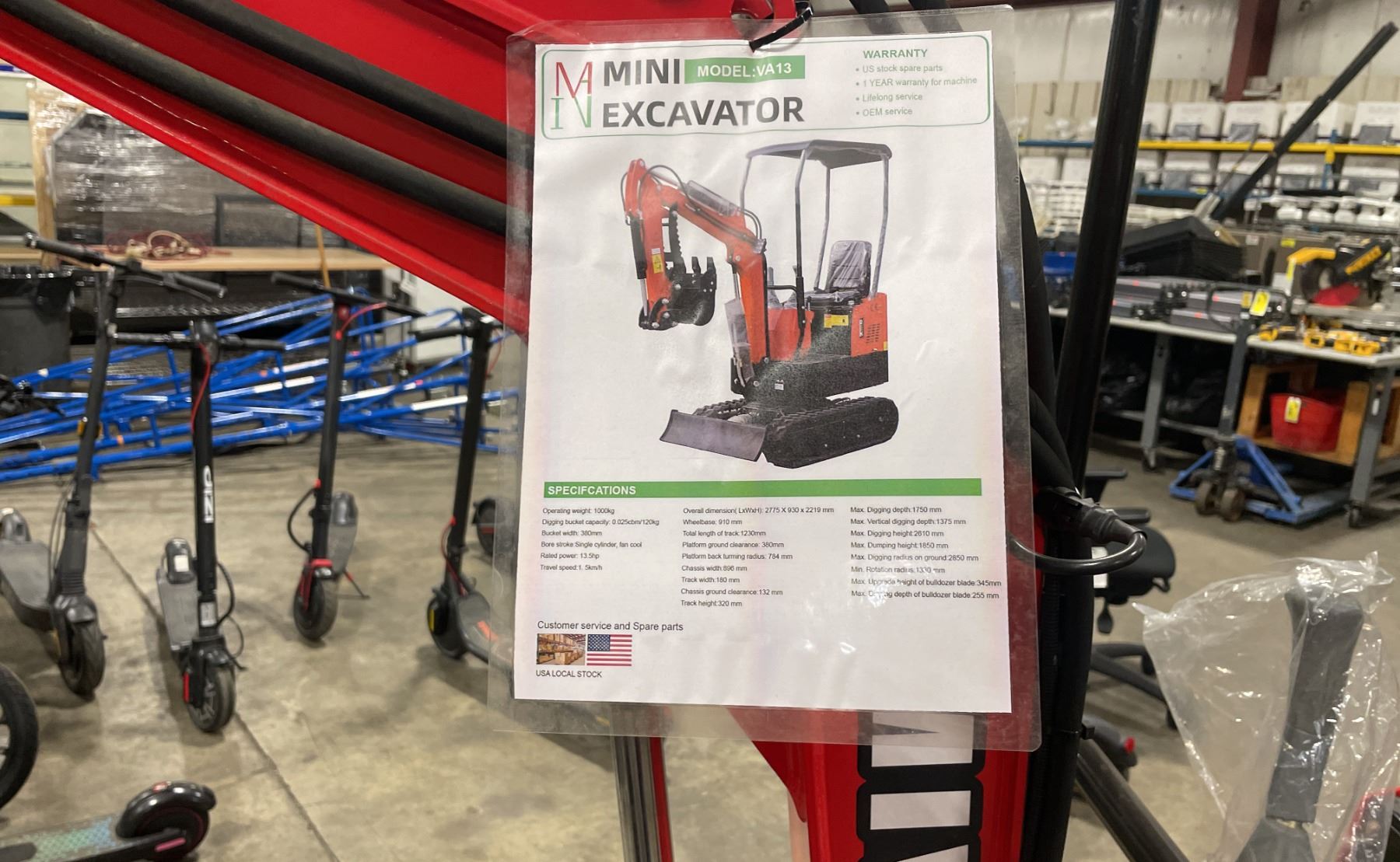 MIVA VA13 2025 RED 13.5 HP GAS POWERED RUBBER TRACK MINI EXCAVATOR WITH ATTACHED DIGGING BUCKET, GRADER BLADE, STATIONARY CLAW, MINI TOOL KIT & KEYS *MEETS CANADIAN EMISSIONS CONTROL REGULATIONS* *MUST HAVE PROPER EQUIPMENT TO TRANSPORT*