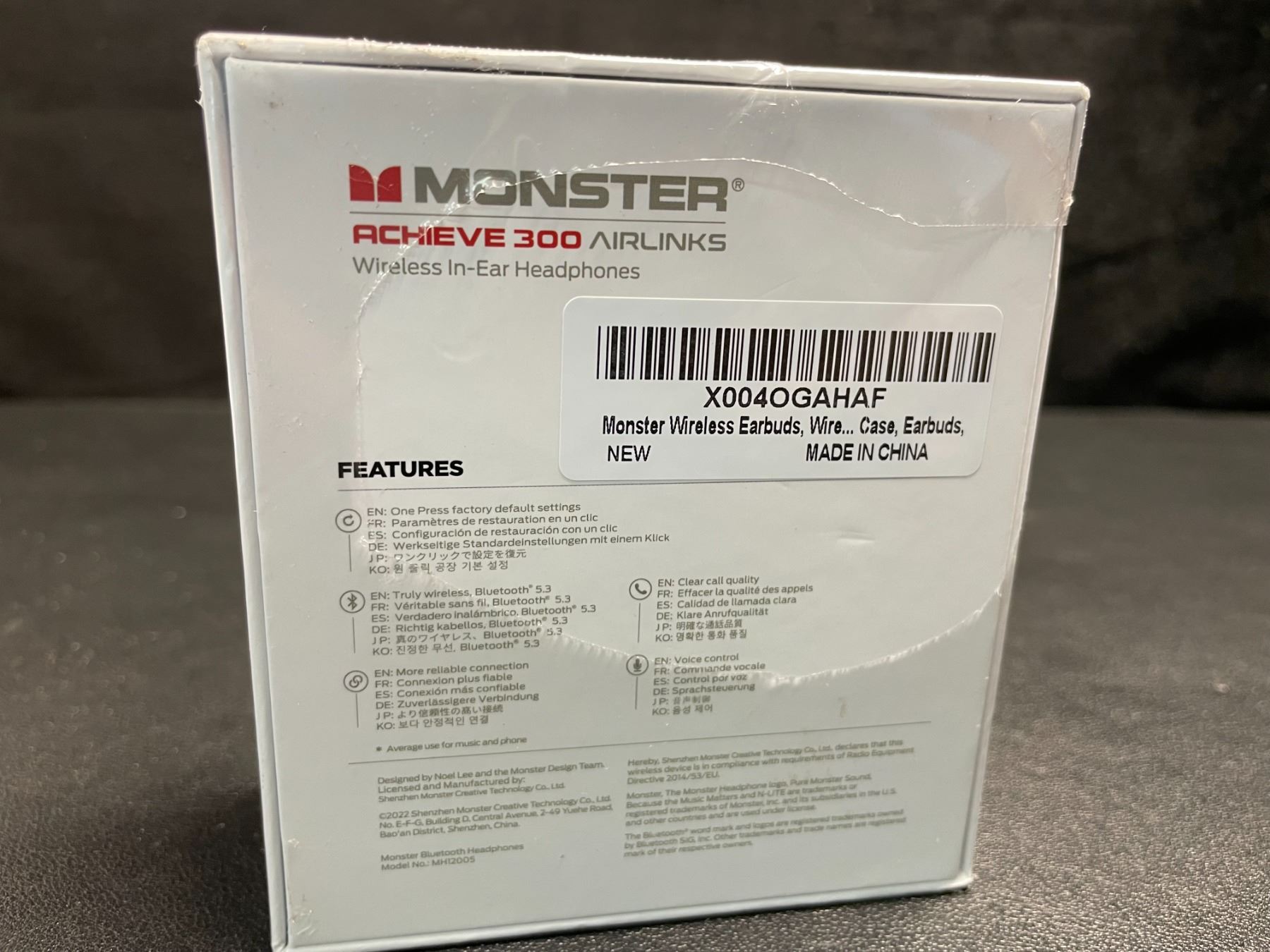 - Monster Achieve 300 AirLinks Wireless Earbuds, Bluetooth 5.3 in-Ear Headphones, Touch Control, Built-in Microphone, USB-C Fast Charging, 32H Playtime, Waterproof in-Ear Earbuds