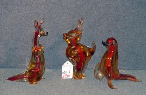 MURANO GLASS ANIMALS- 3 X THE MONEY (ONE DAMAGED)