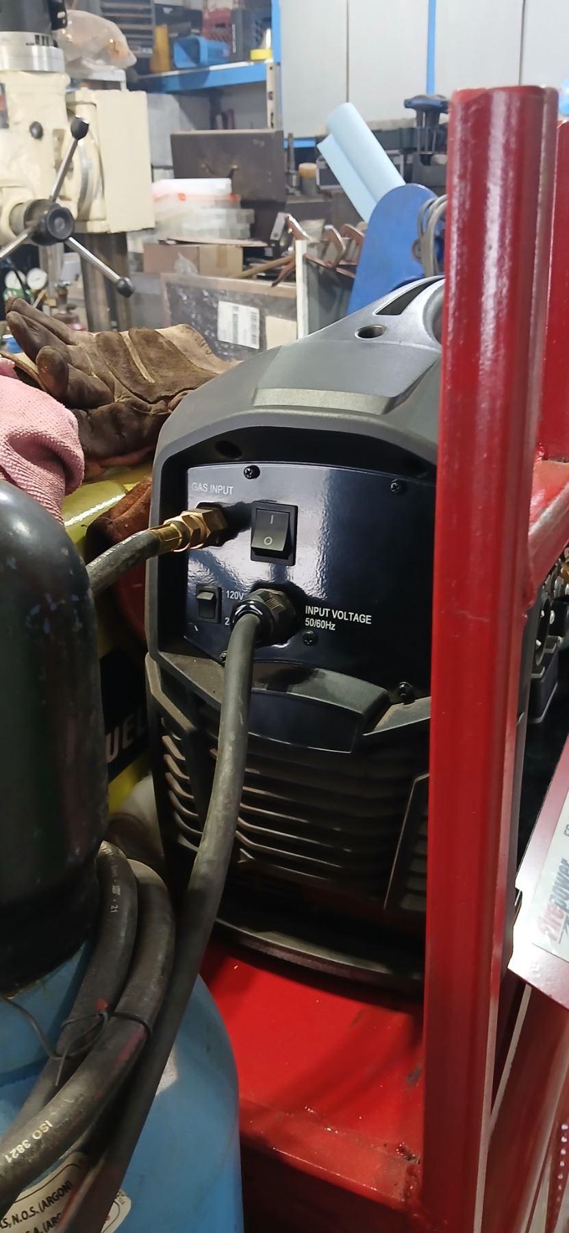 Fonctionne sur 110V et 220V, peut brancher un "spool gun" (pas inclus), utiliser avec un gaz inerte ou avec de la broche fourrée (flux core)