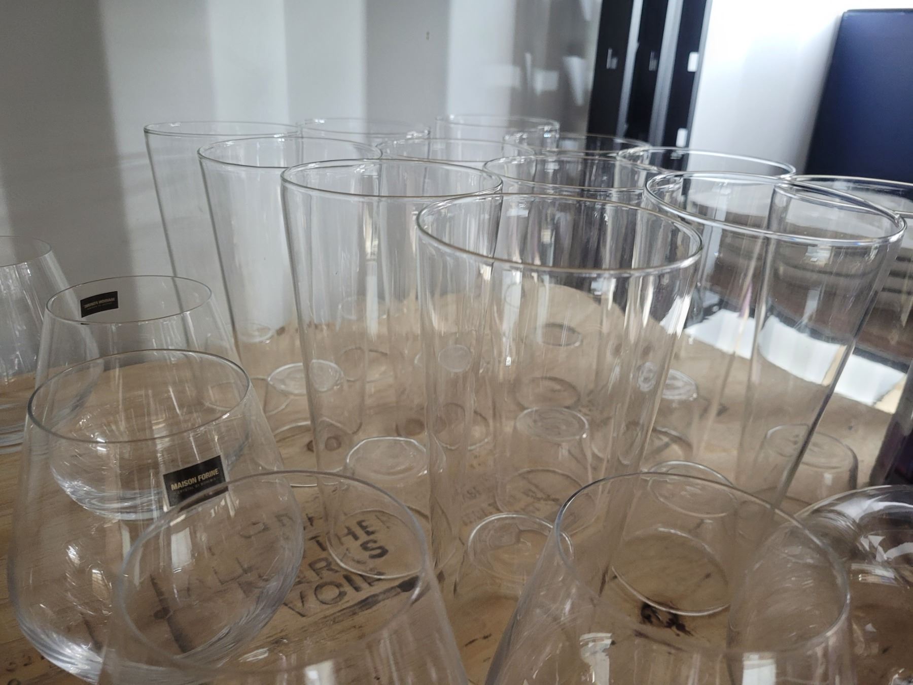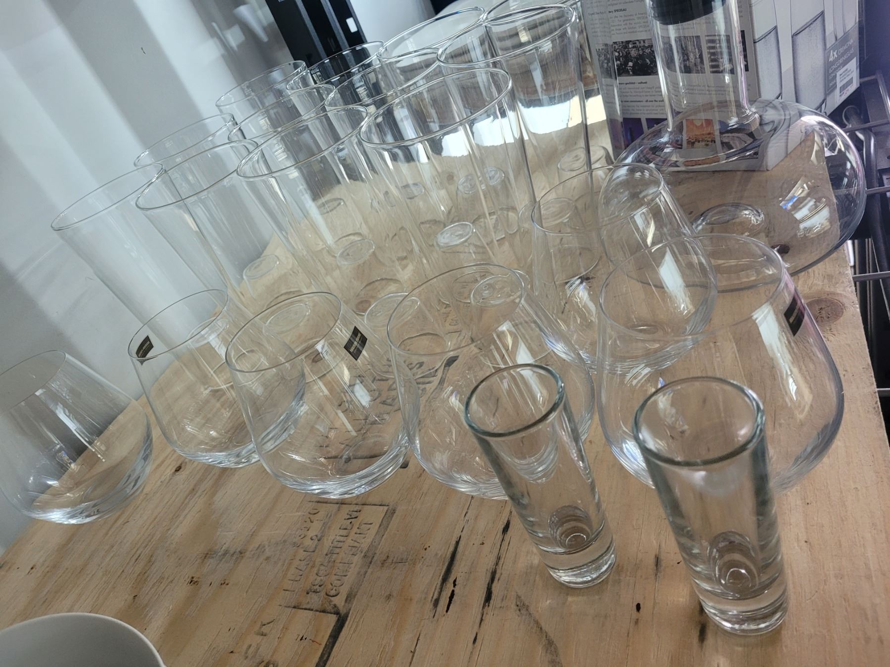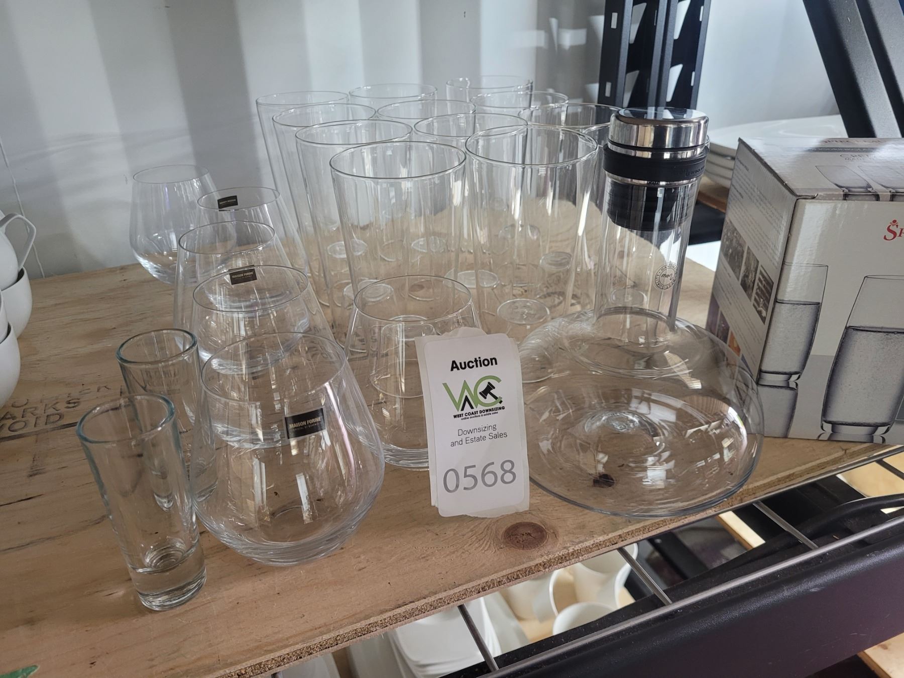 22 pieces of designer drink ware includes wine decanter. Pickup at 9 am