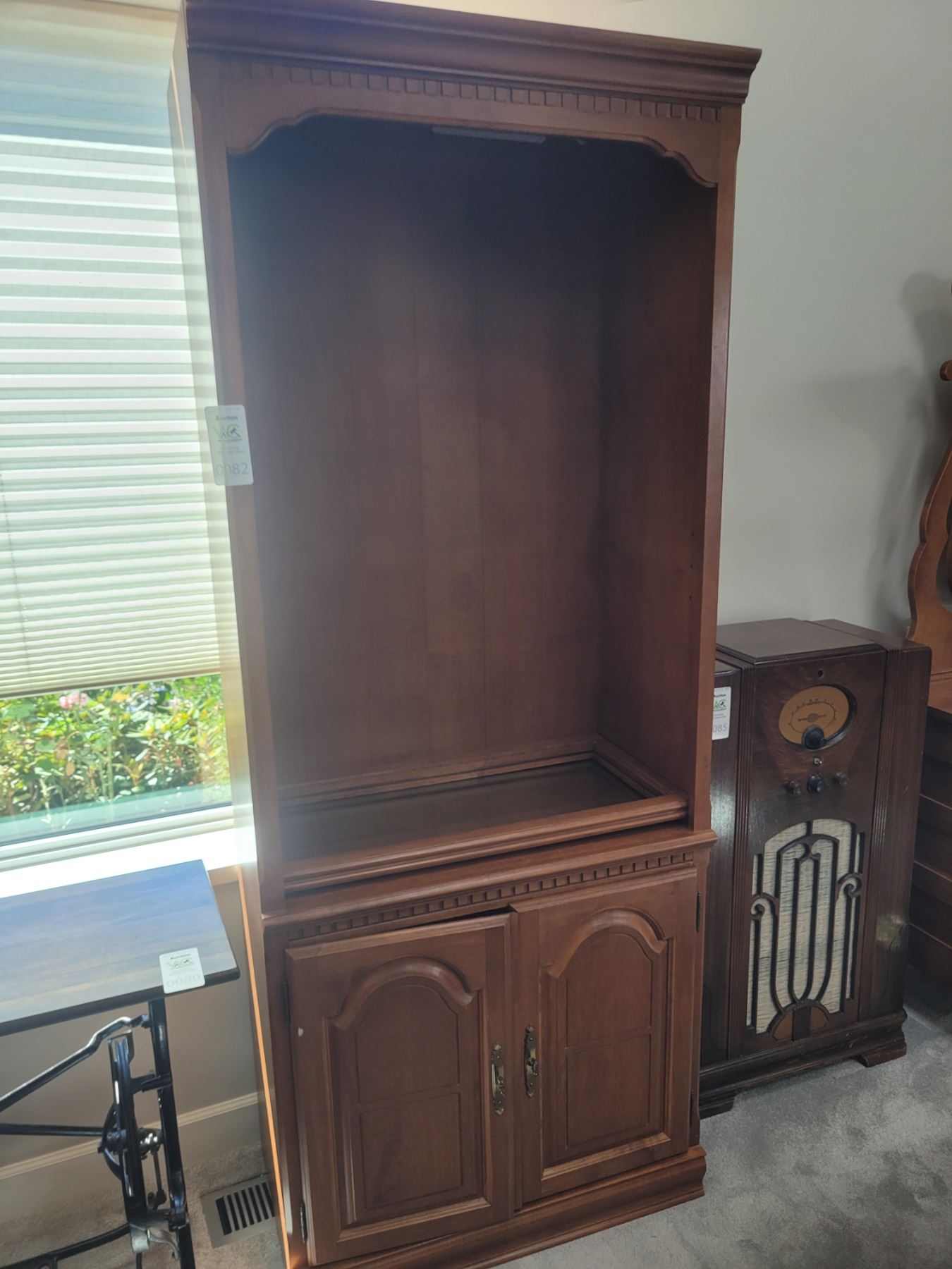 Maple cabinet 30x17x76. Has two adjustable shelves and lighting. Pick up 11-12