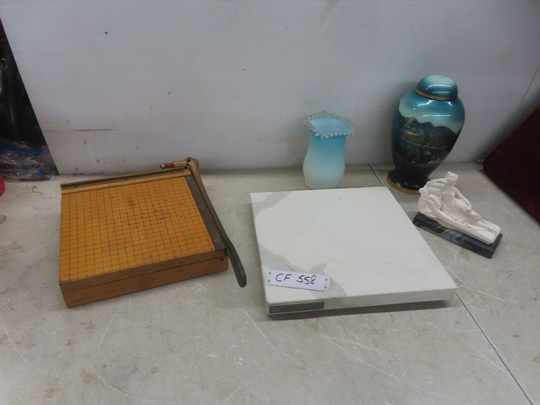 Marble Cutting Board, Paper Cutter, Urn, Vase +