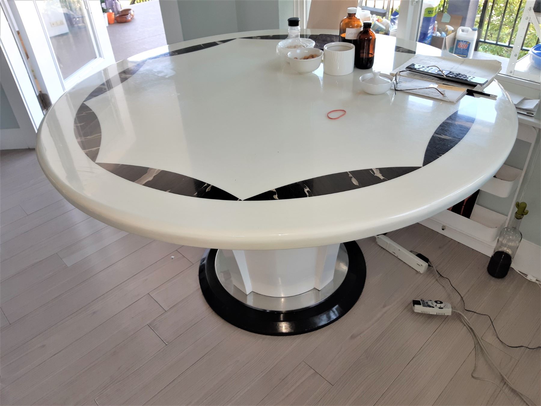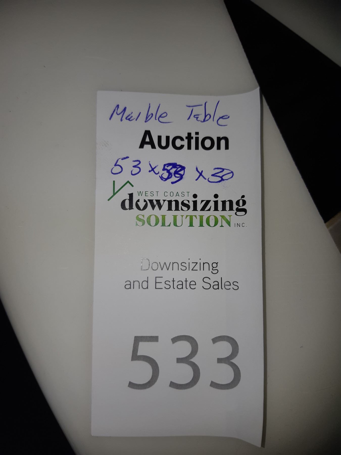 Round marble top table with Center pedestal 53x53x30 pickup at 11 am