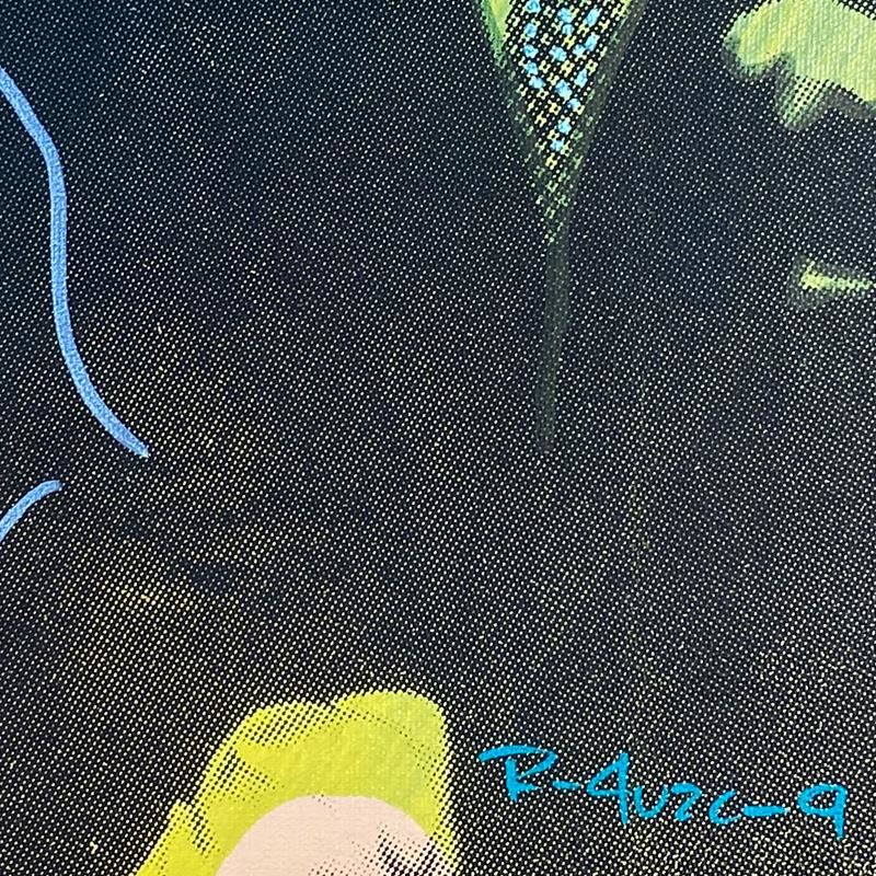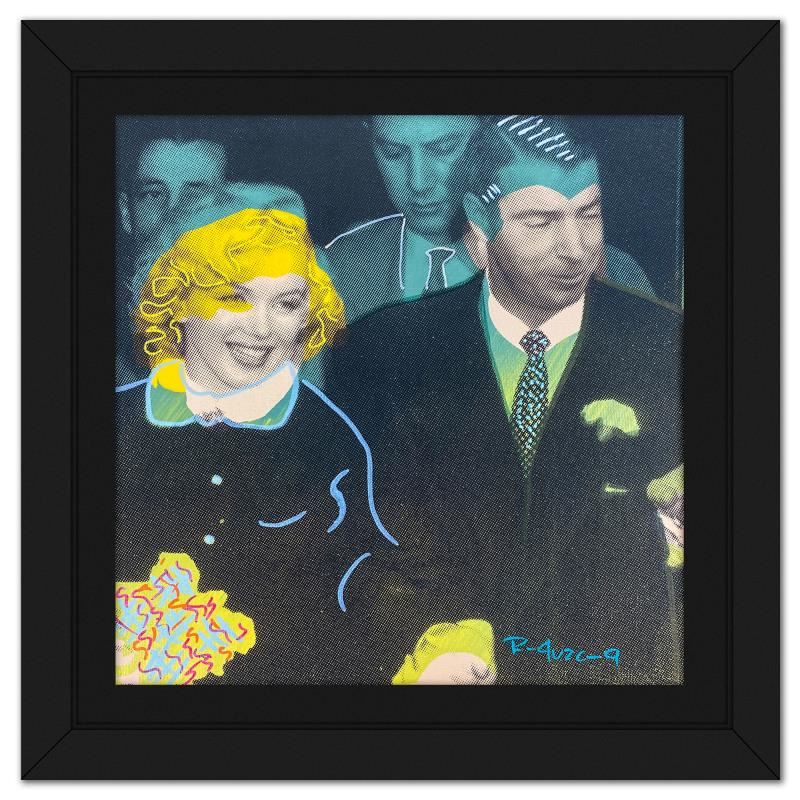 "Marilyn and Joe DiMaggio Wedding" is a one-of-a-kind hand-pulled mixed media silkscreen on canvas by Ringo (Daniel Funes) - protege of Andy Warhol's apprentice, Steve Kaufman.This piece is hand signed by the artist. This piece comes custom framed. Includes Letter of Authenticity. Measures approx. 16.5" x 16.5" (frame), 13.5" x 13.5" (image). This item requires special handling and may have a longer than usual turnaround.