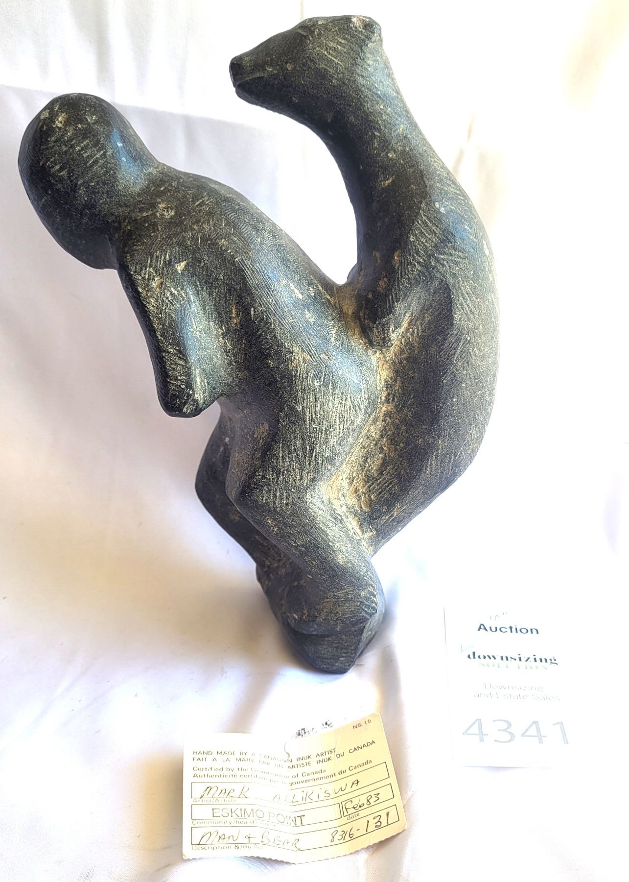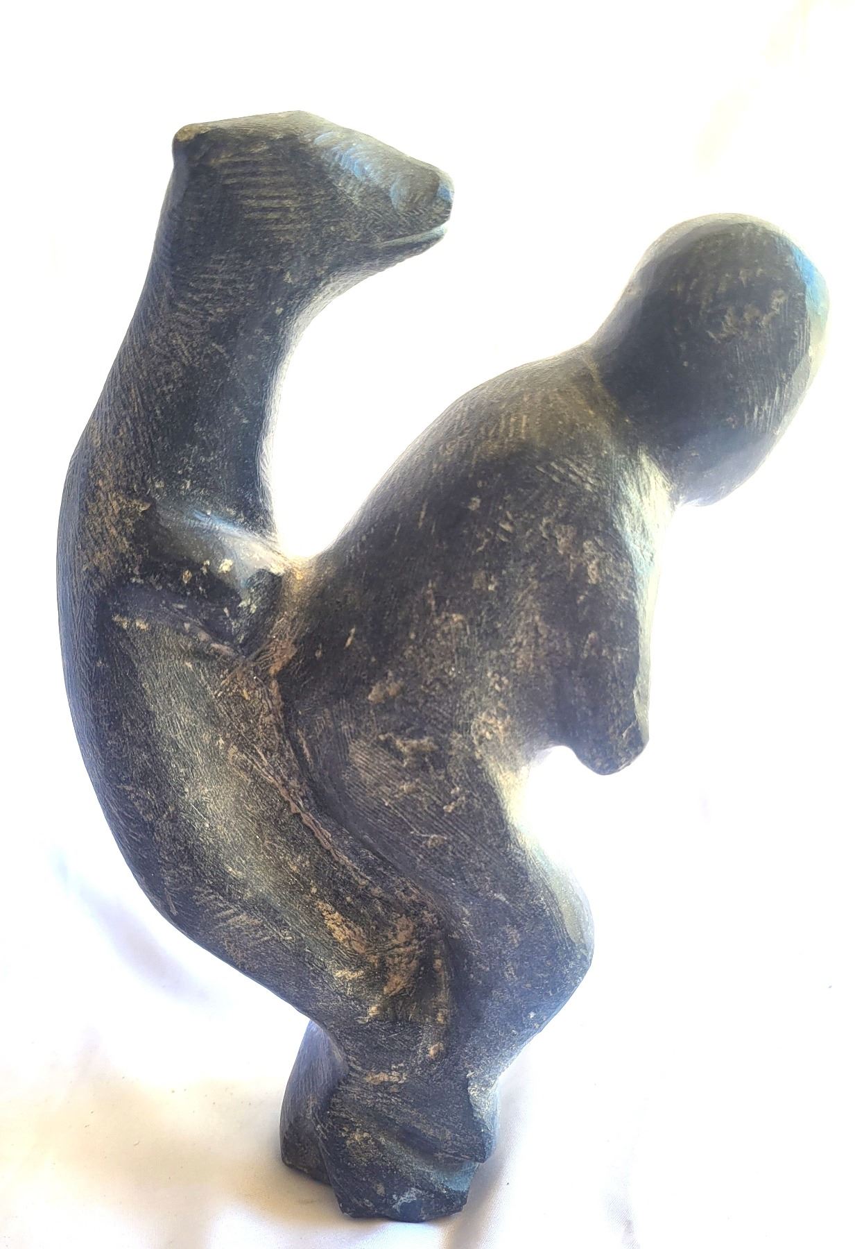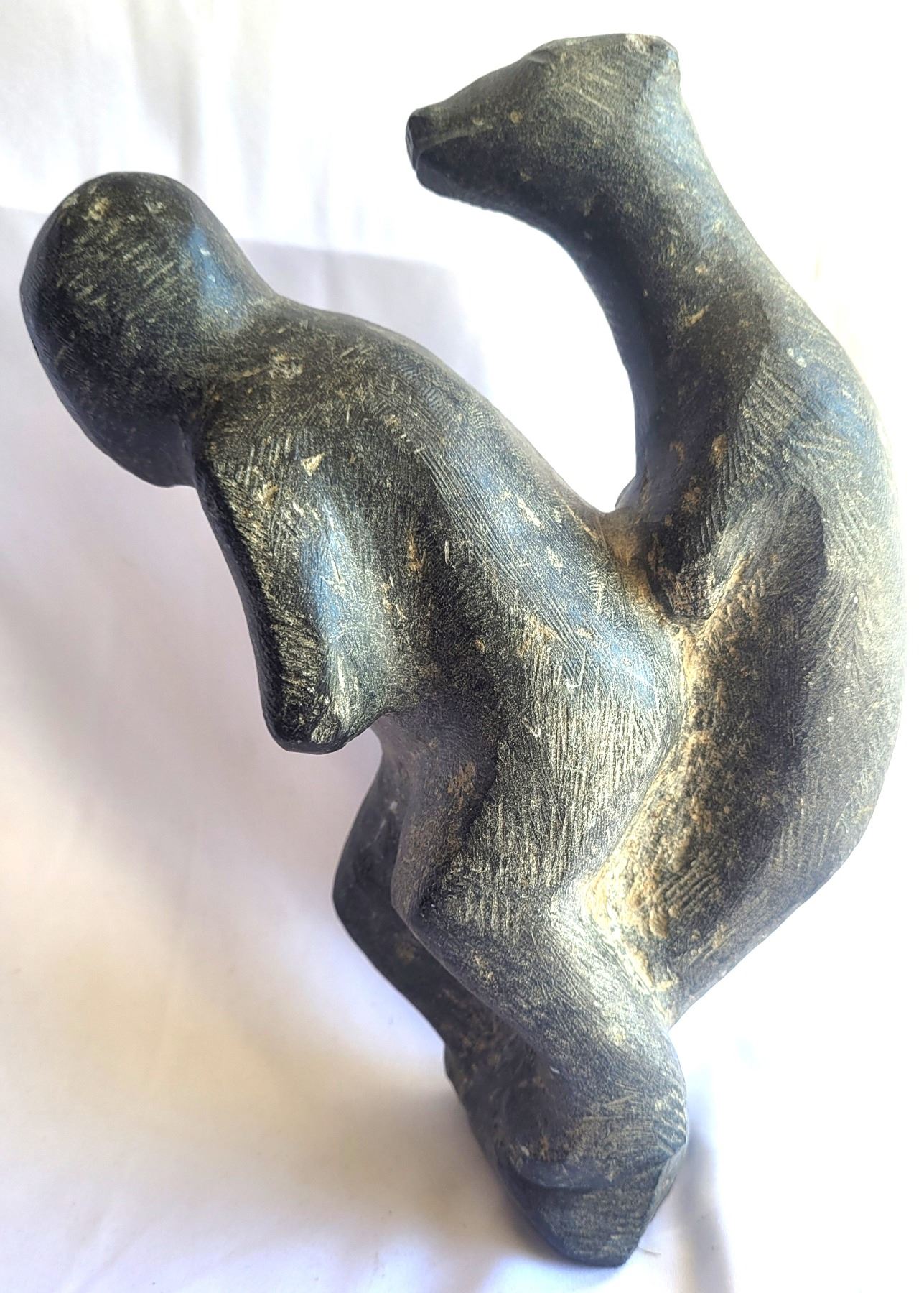 Soapstone carving 10" both bear ears have chips. Eskimo Point Pickup at 9 am