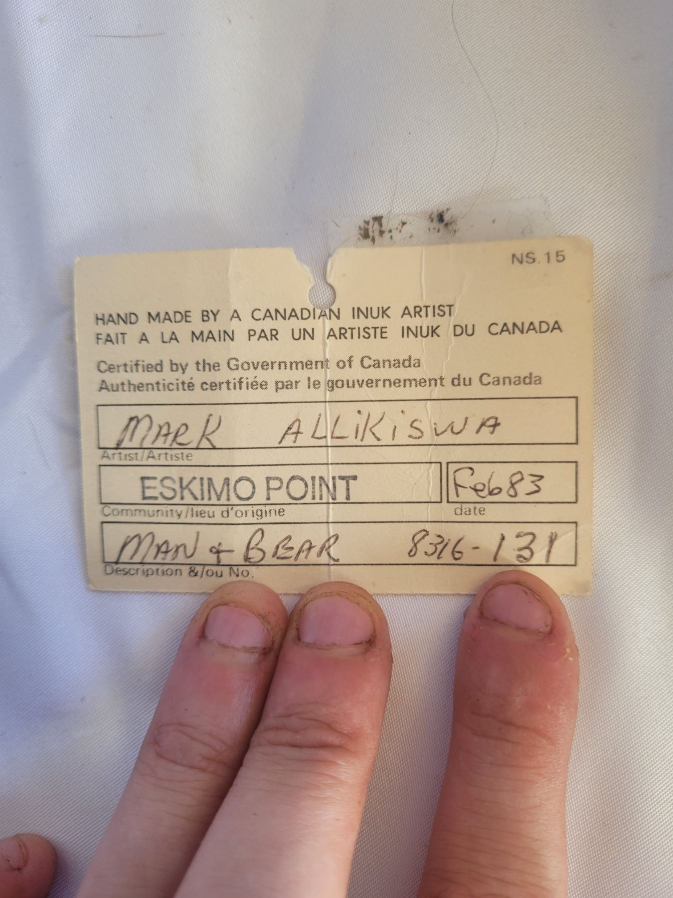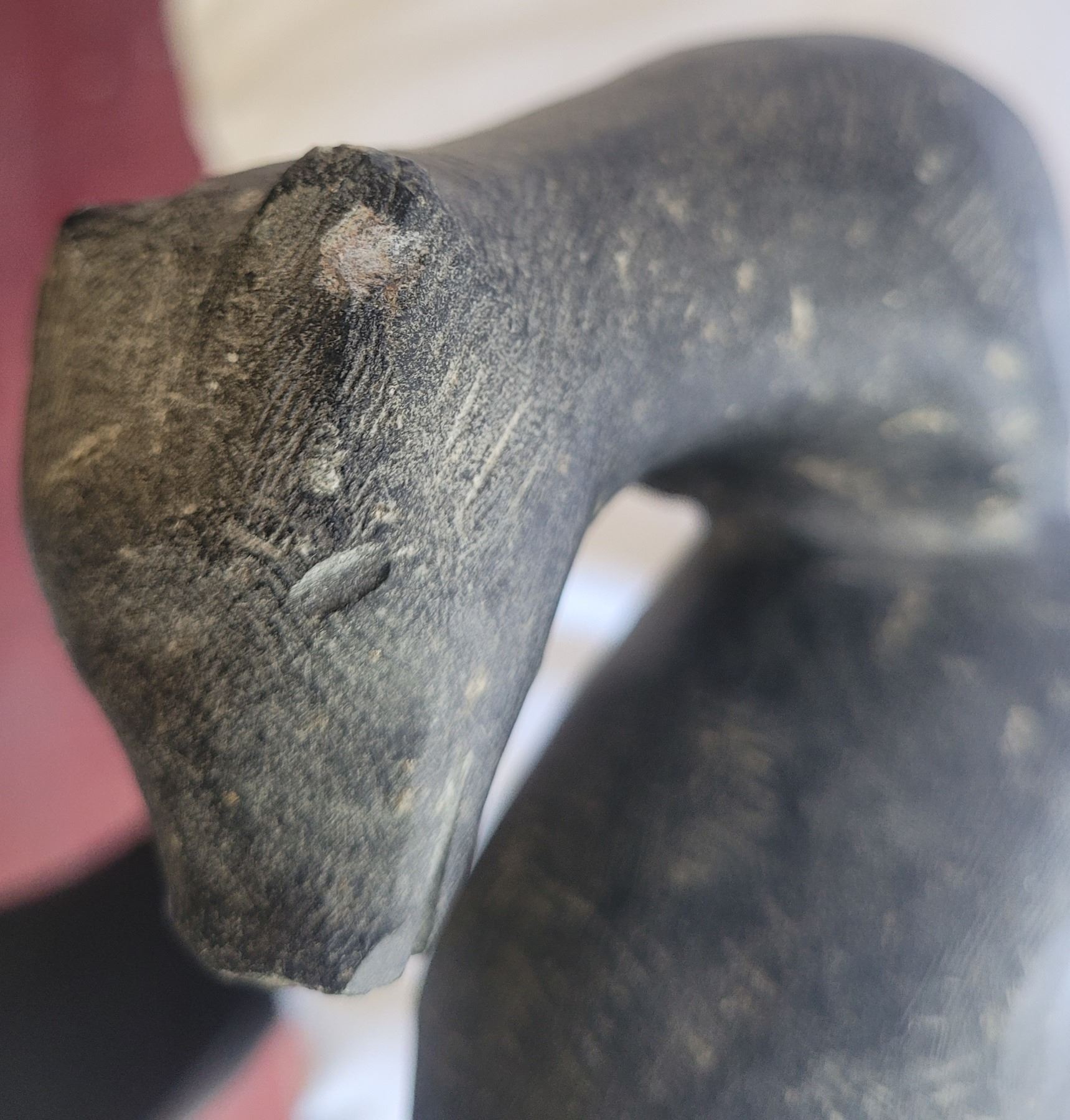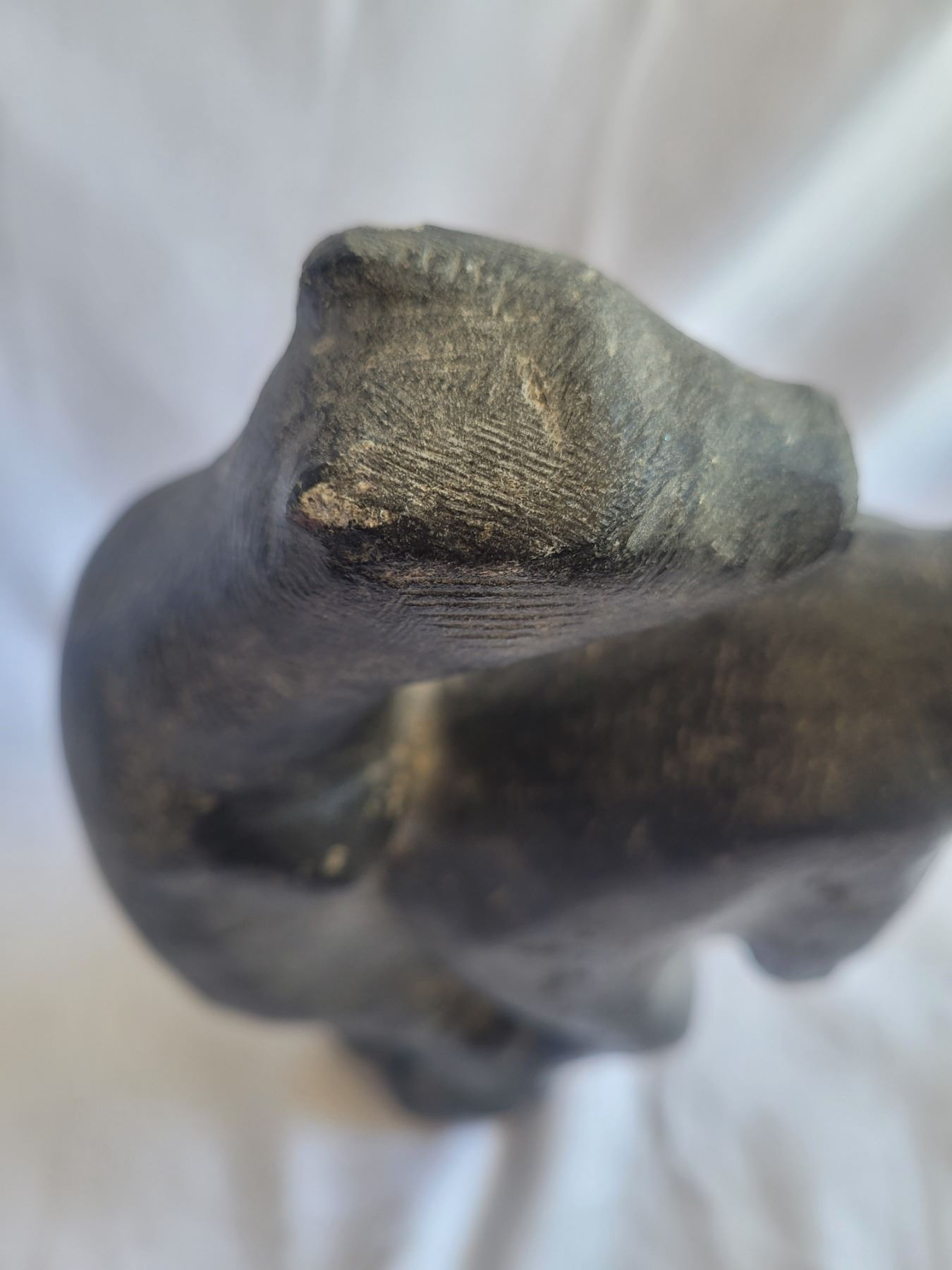 Soapstone carving 10" both bear ears have chips. Eskimo Point Pickup at 9 am