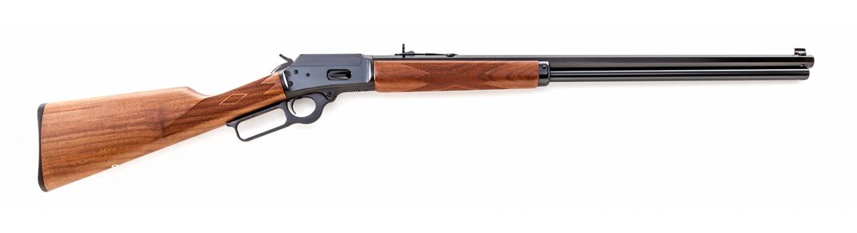 Marlin Model 1894 Cowboy Limited Lever Action Rifle, #00120871, .44 mag. cal., 24'' octagonal barrel, blue finish, checkered walnut stock, with crossbolt safety, buckhorn rear and gold bead front sights. Condition is excellent, appearing as new and unfired. Est.: $600-$800. (Modern)