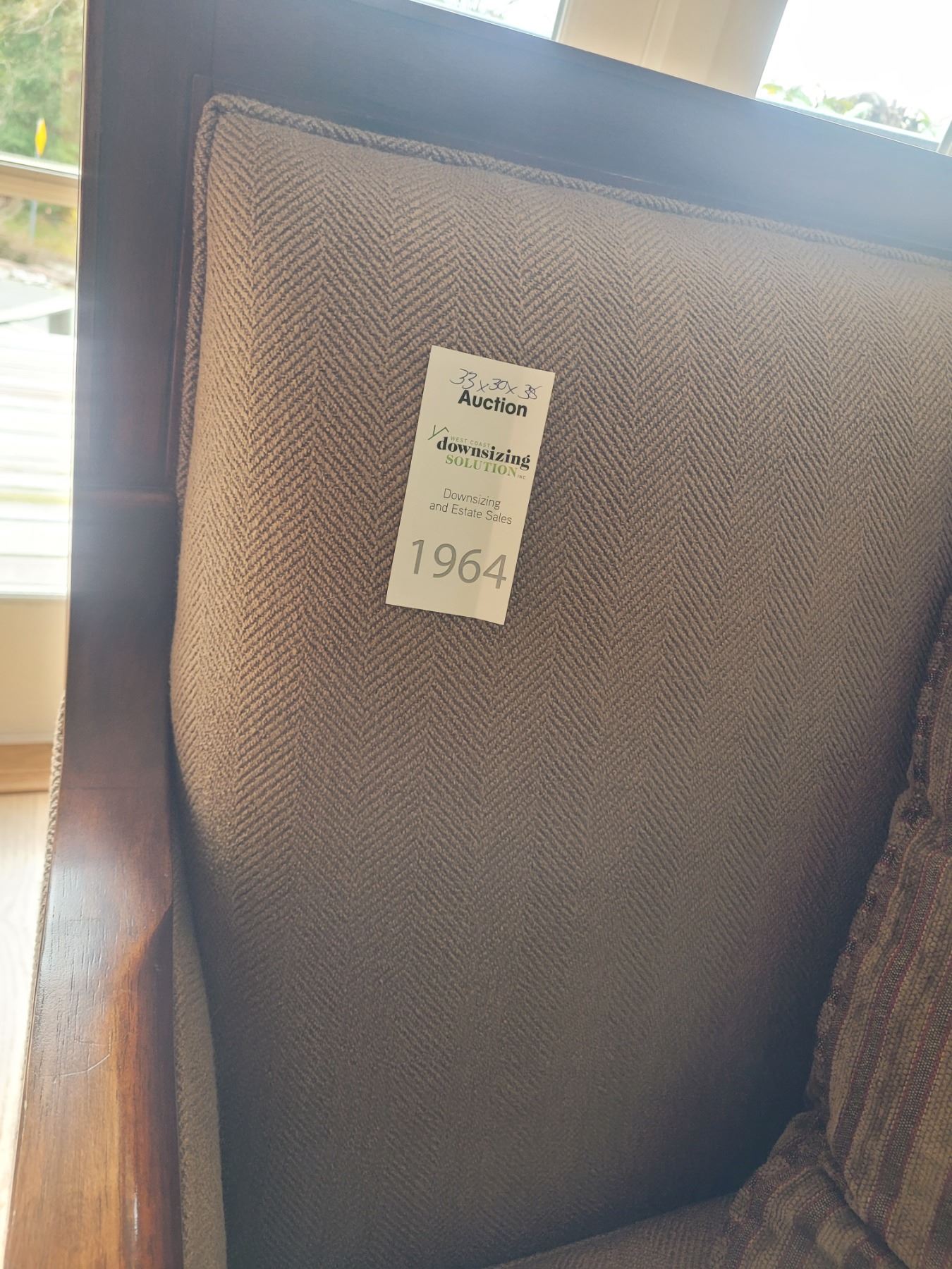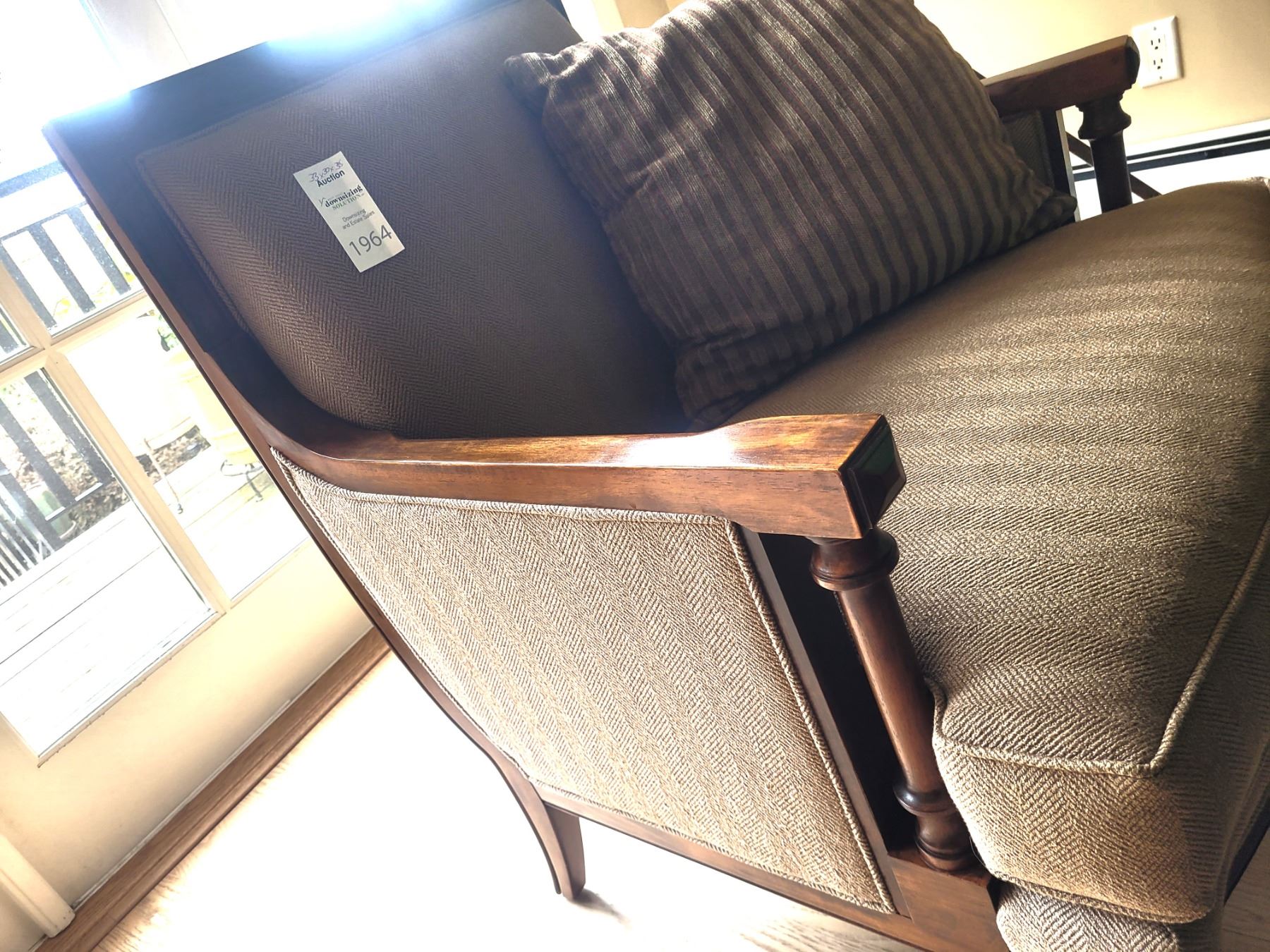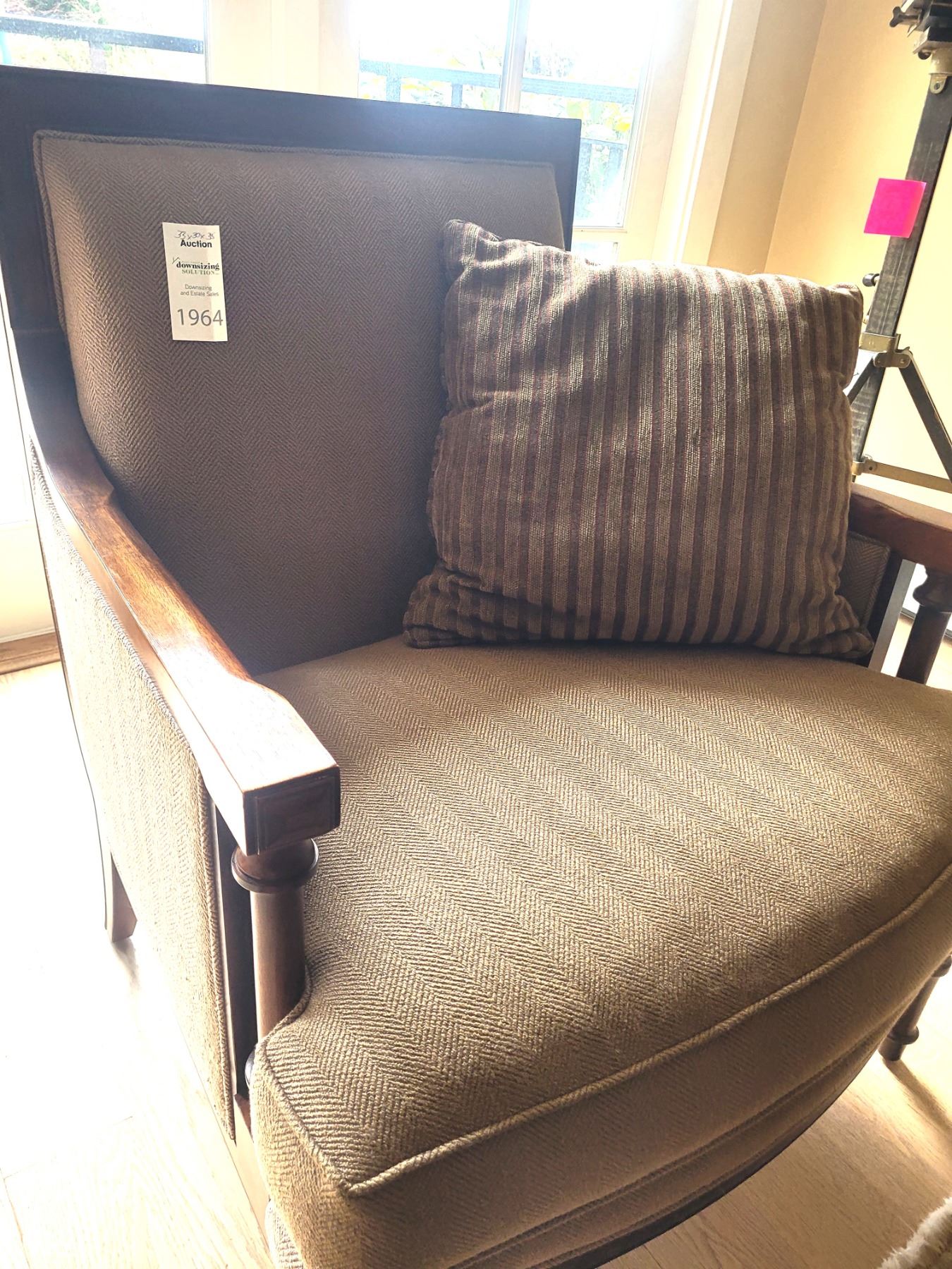 Upholstered arm chair by Martha Stewart, 33x30x38. Heavy, bring help, stairs. Pick up 9-10
