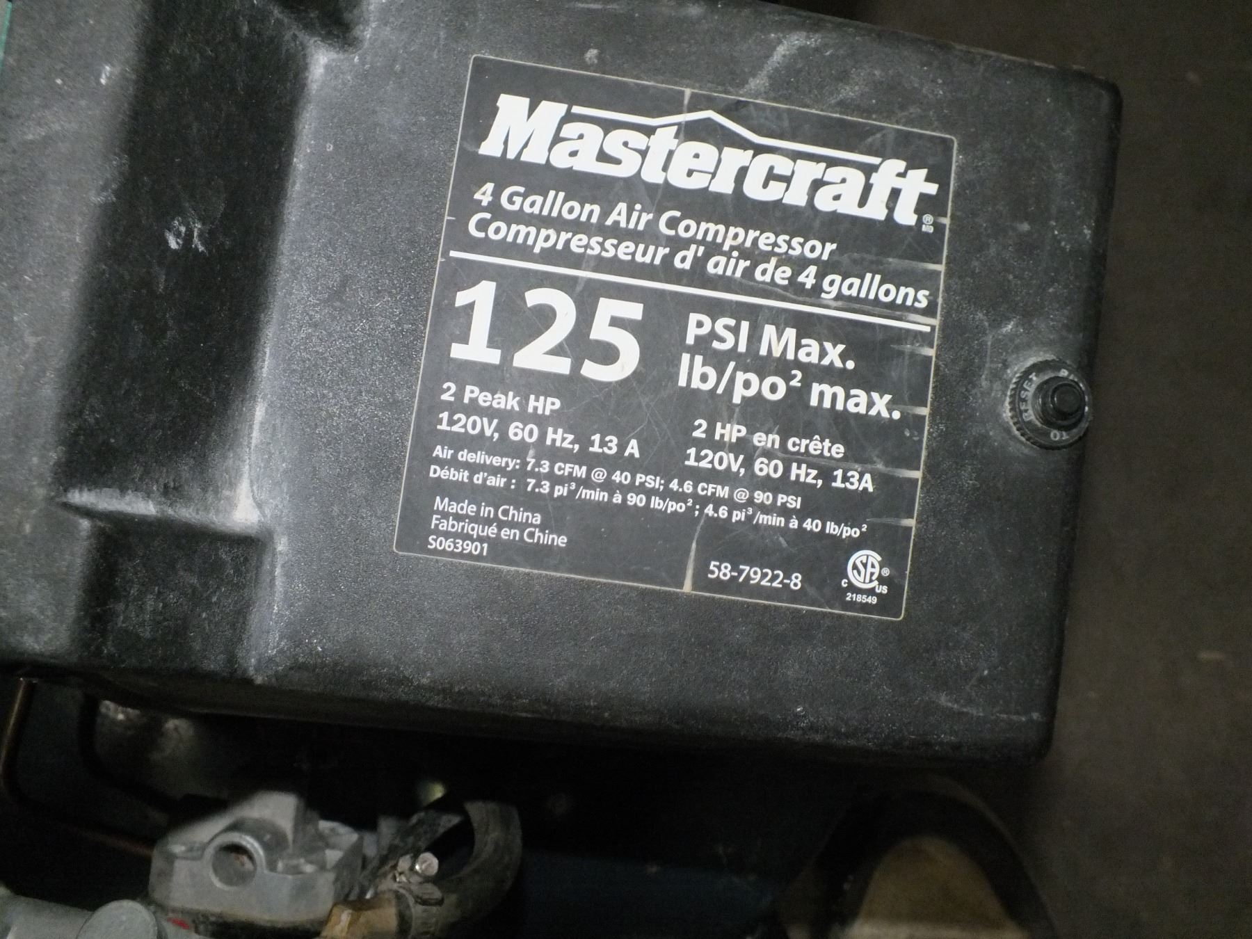 Mastercraft 4 gallon Air Compressor, in good working condition...used