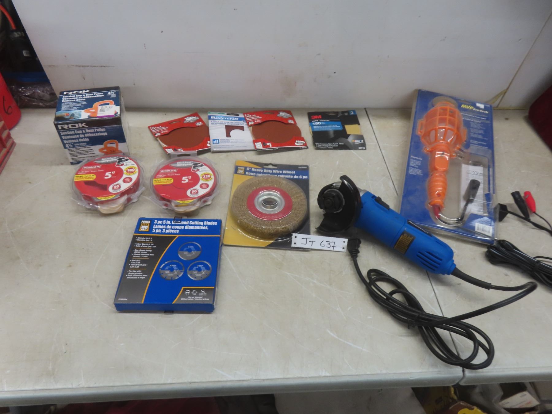Mastercraft Angle Grinder, Sand Paper, Sanding Discs, 5 in Cutting Blades, 12V Trouble Light