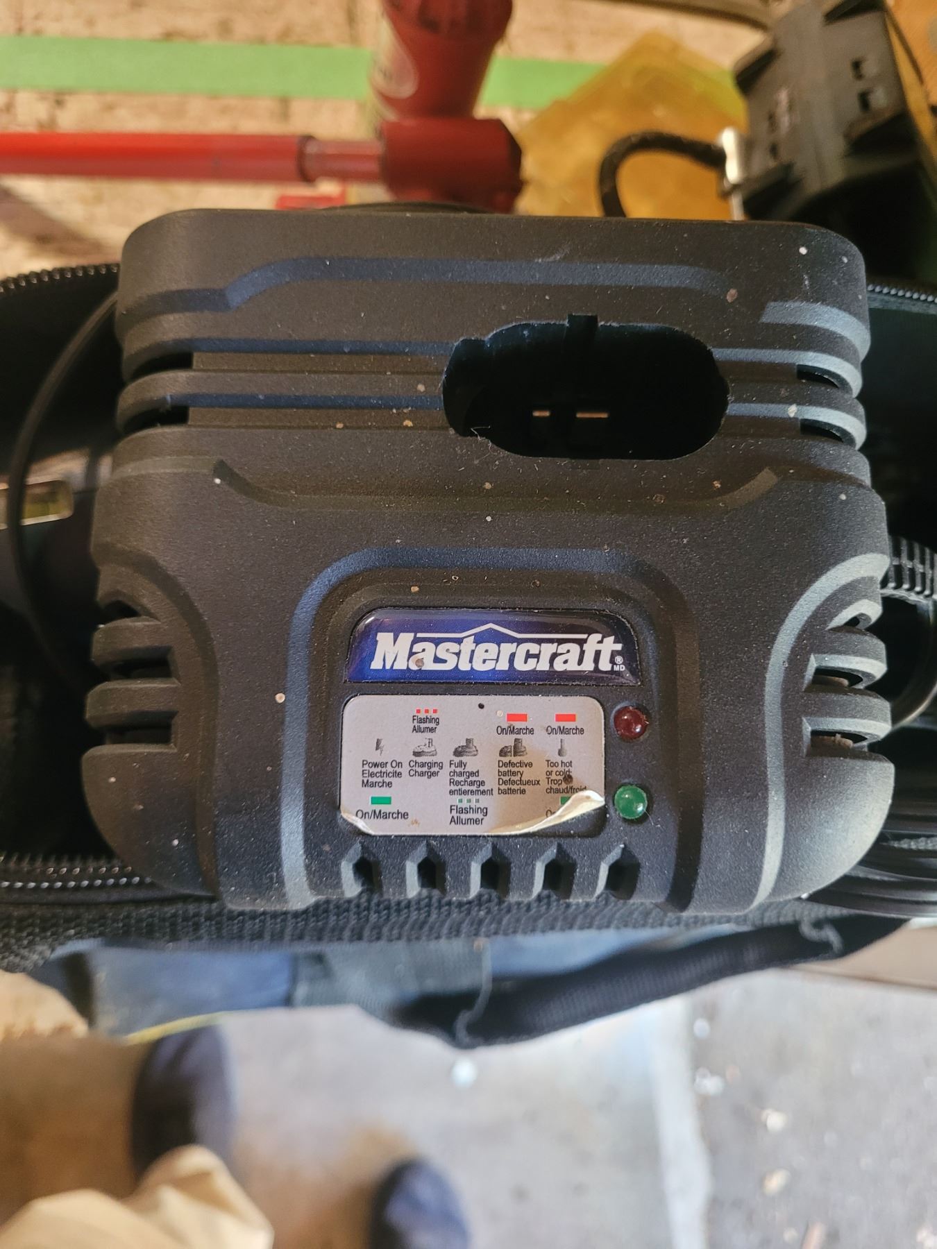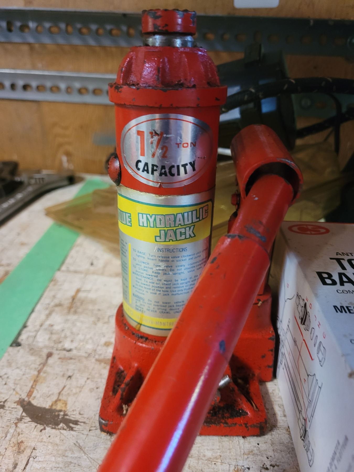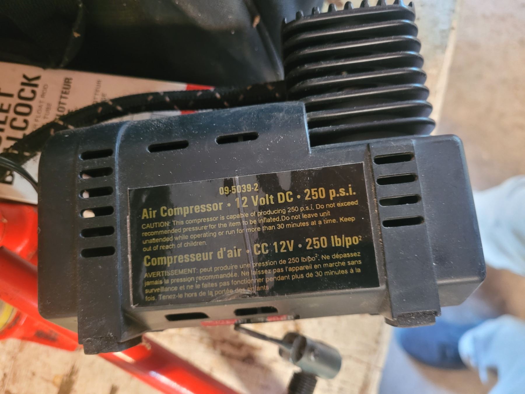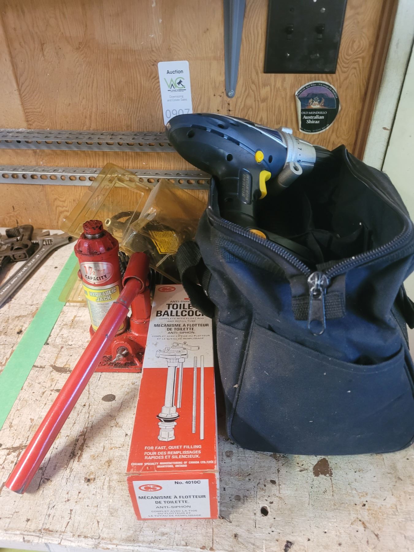 Bottle Jack, Mastercraft cordless drill with charger, batteries and bag. Portable electric air compressor 250 psi. Pickup at 10 am