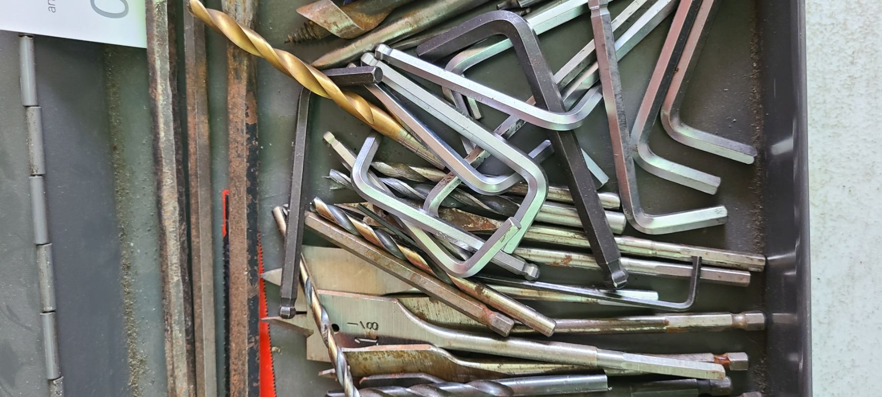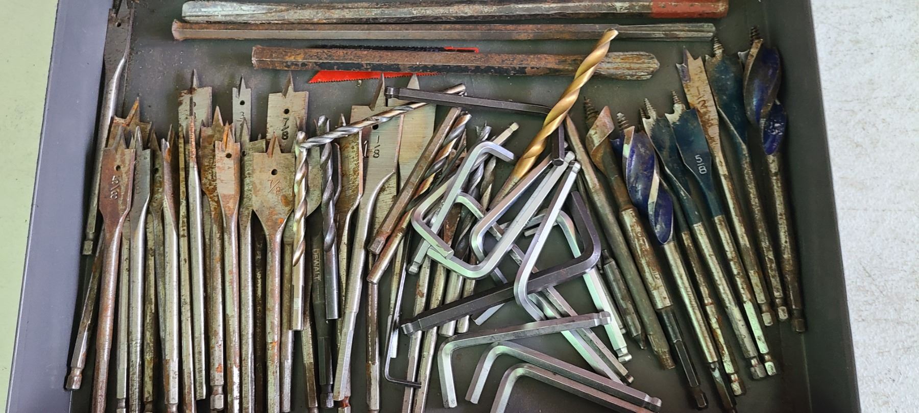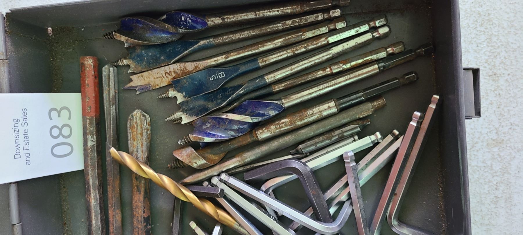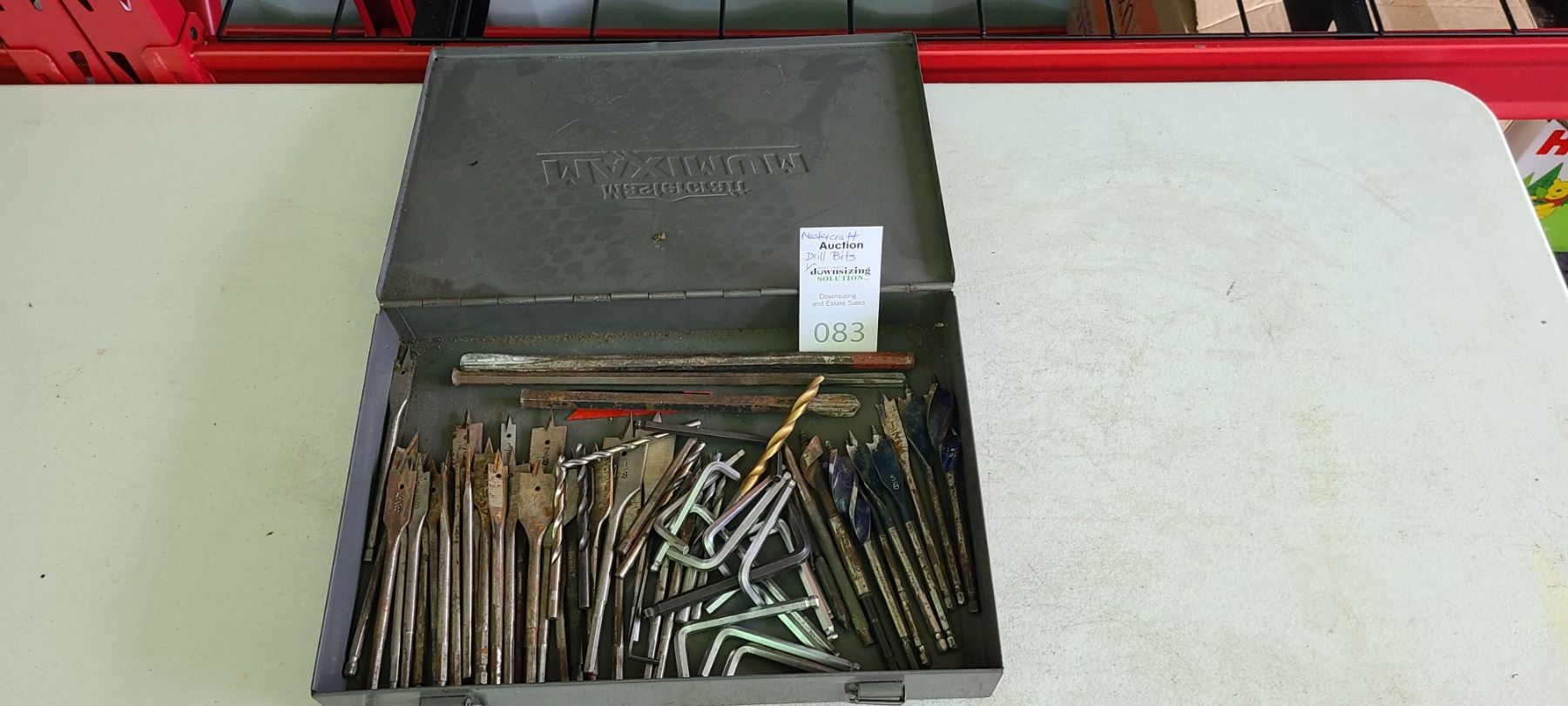 assortment of mastercraft drill bits in metal case. Pickup at 10 am