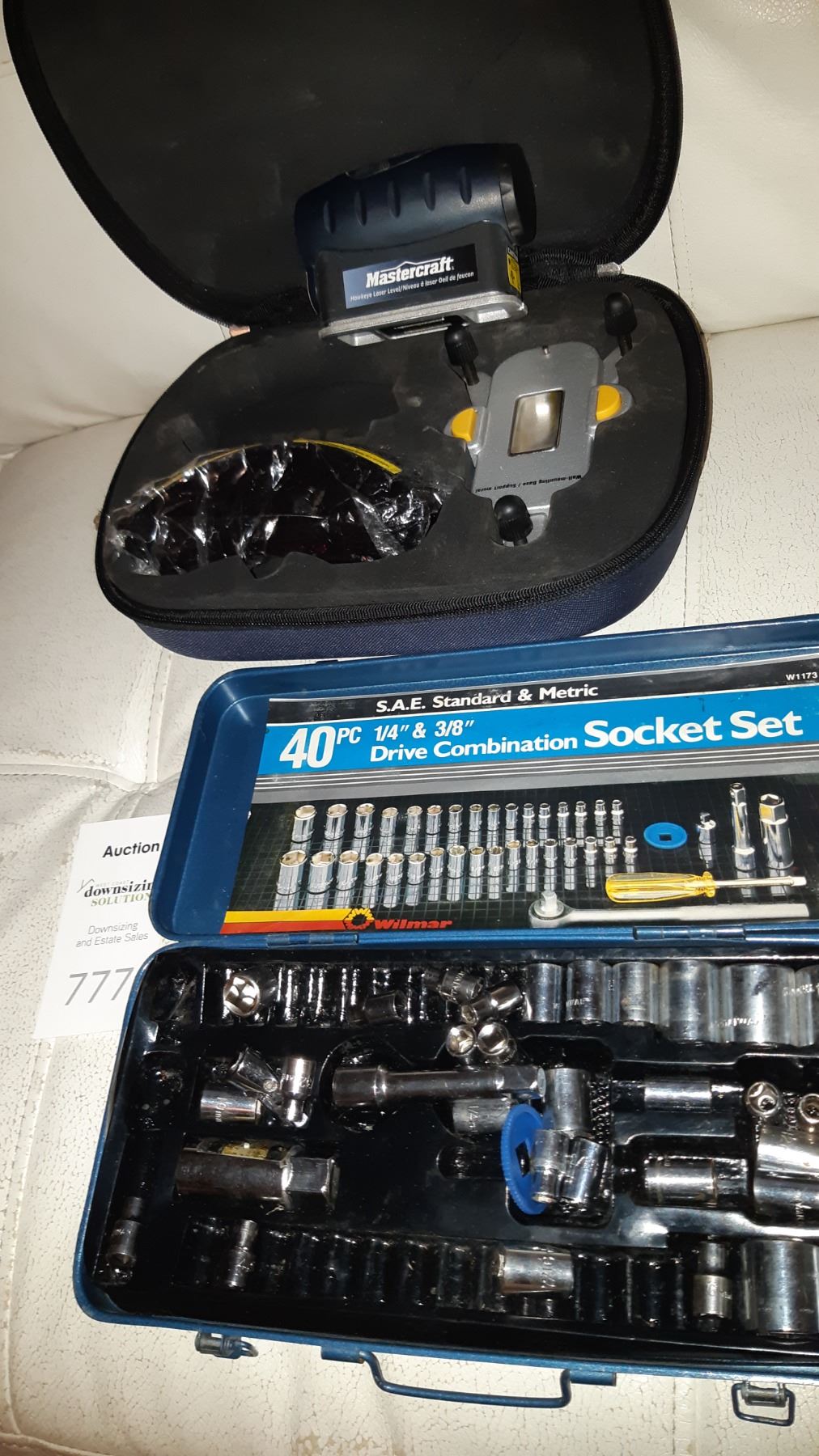 Mastercraft level and socket set, incomplete. Pick up at 9am.