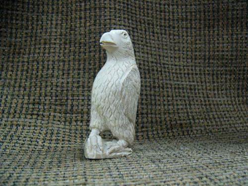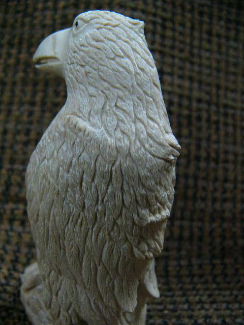 Mastodon ivory eagle 3.5" tall, very intricately carved, signed RAI (33)