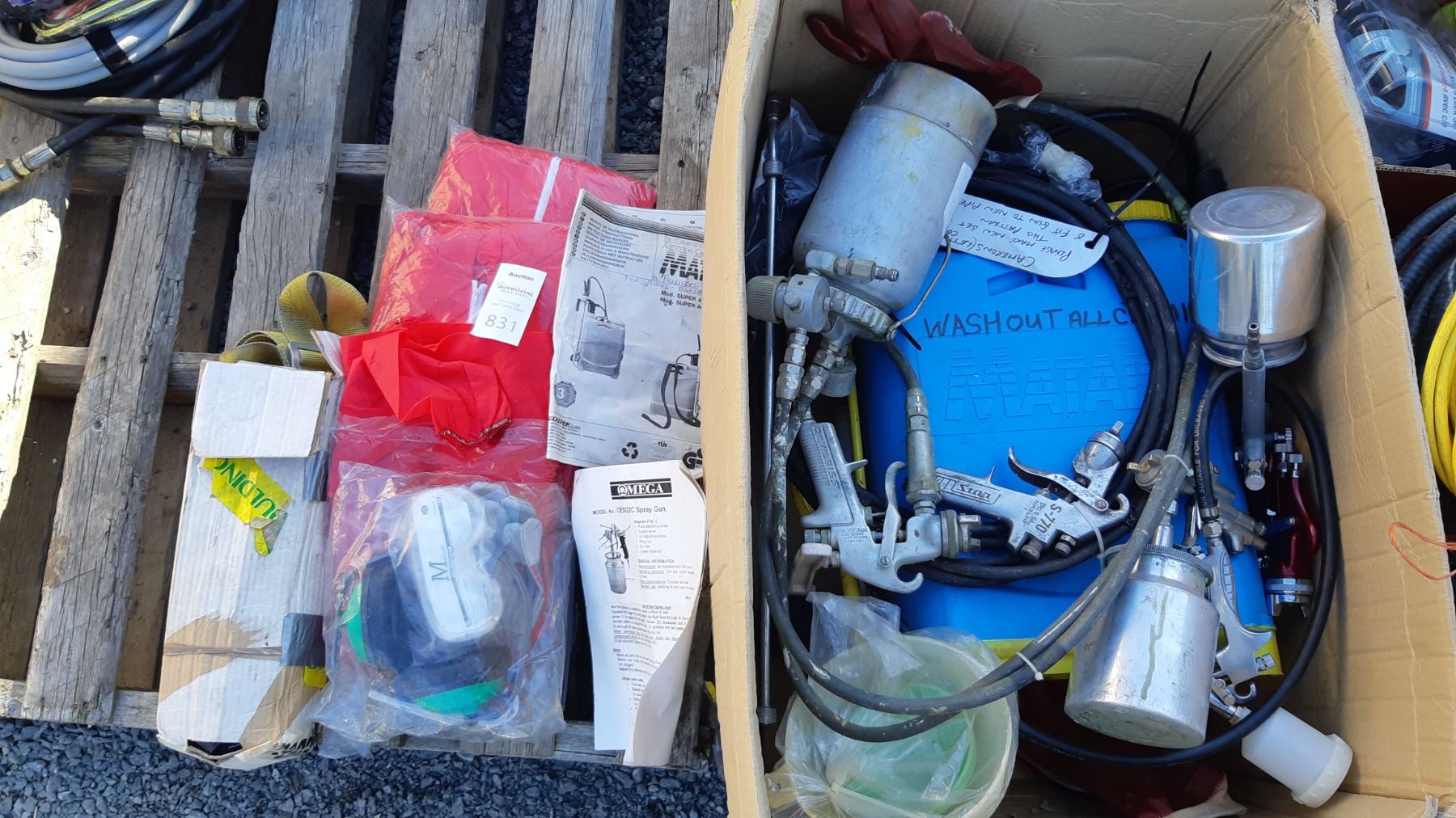 Spray tank, gun, safety harness, expired. Pickup at 11 am