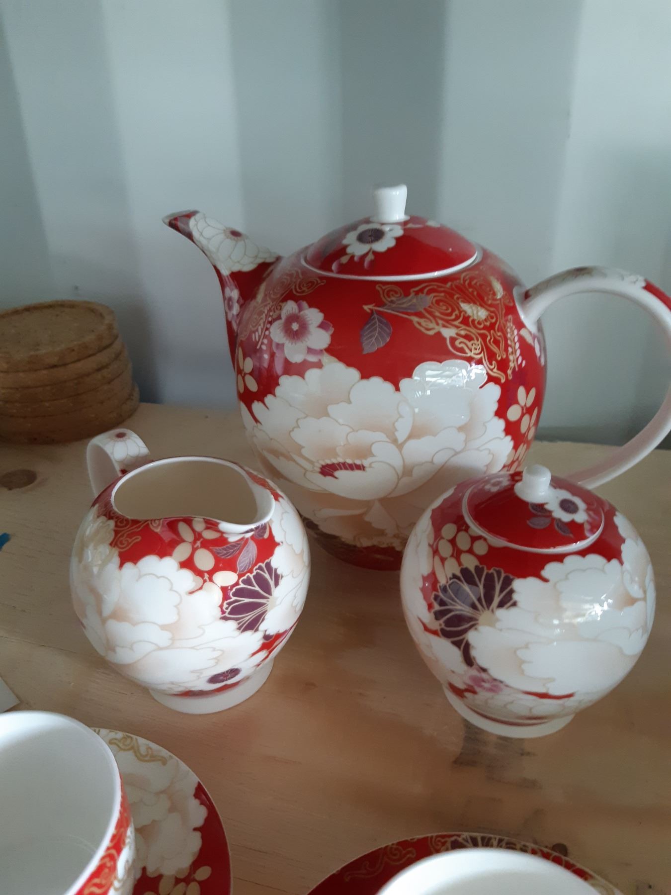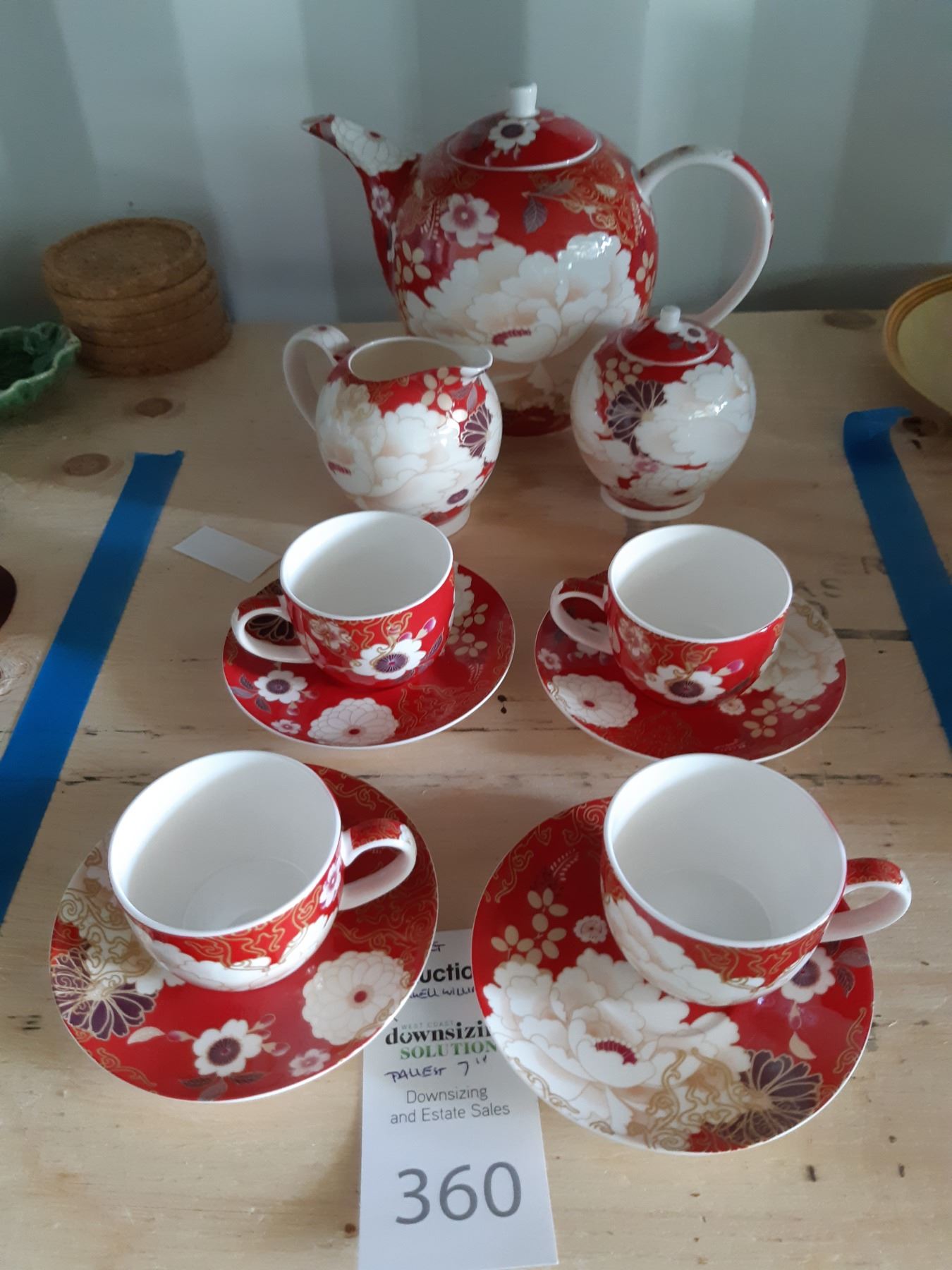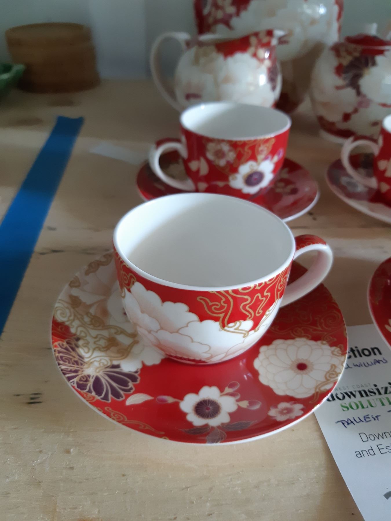 Teapot, C&S bowl, 4 cups and saucers. Bring packing materials and pickup at 9 am