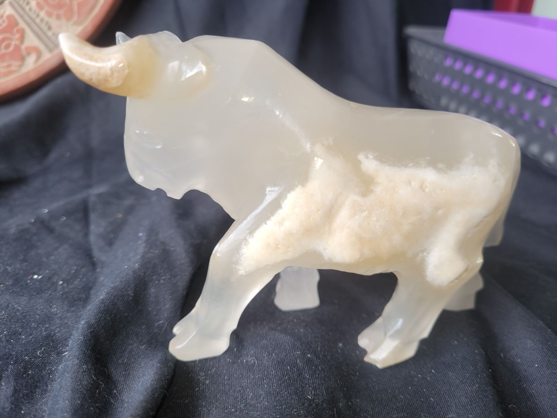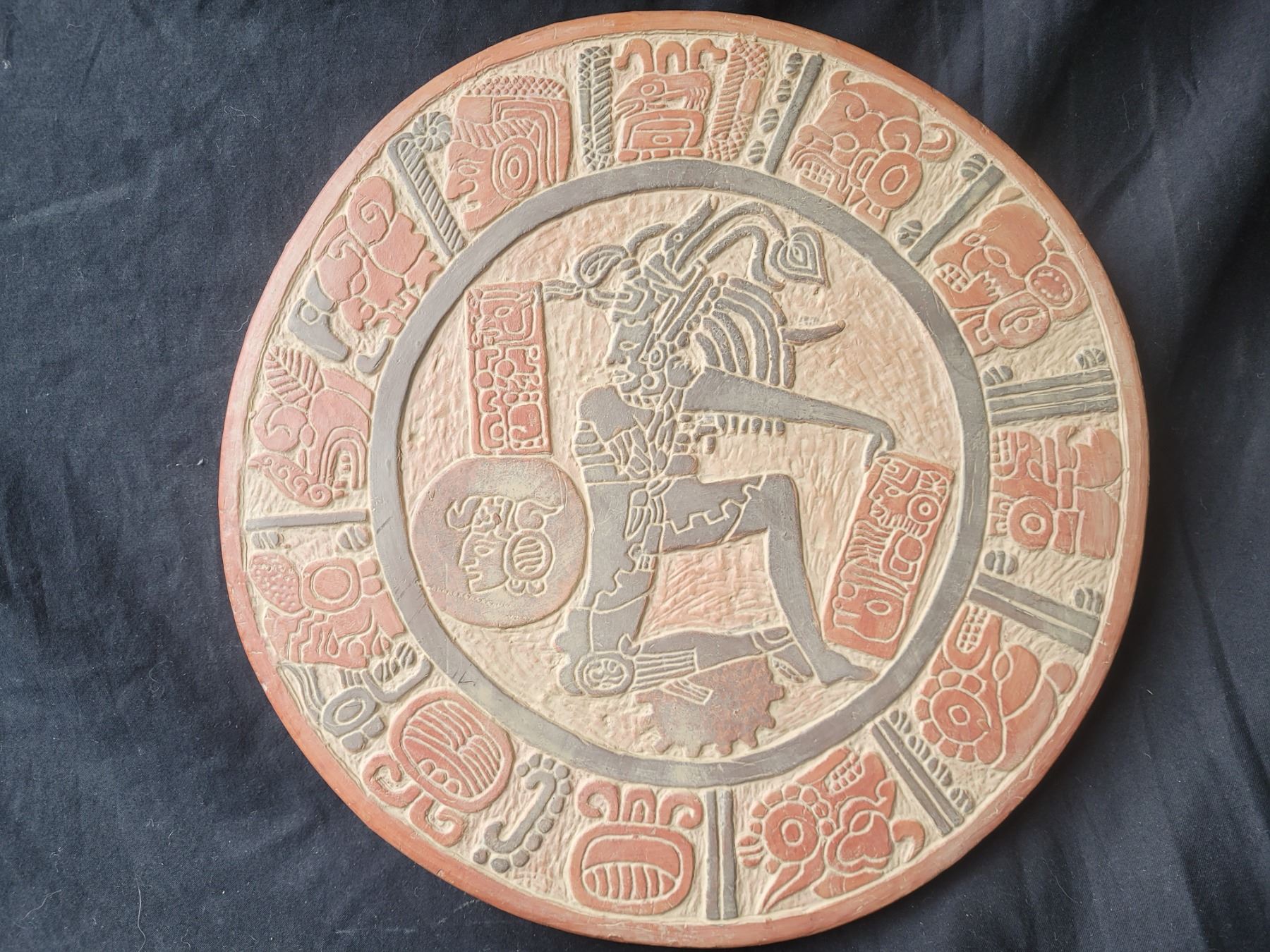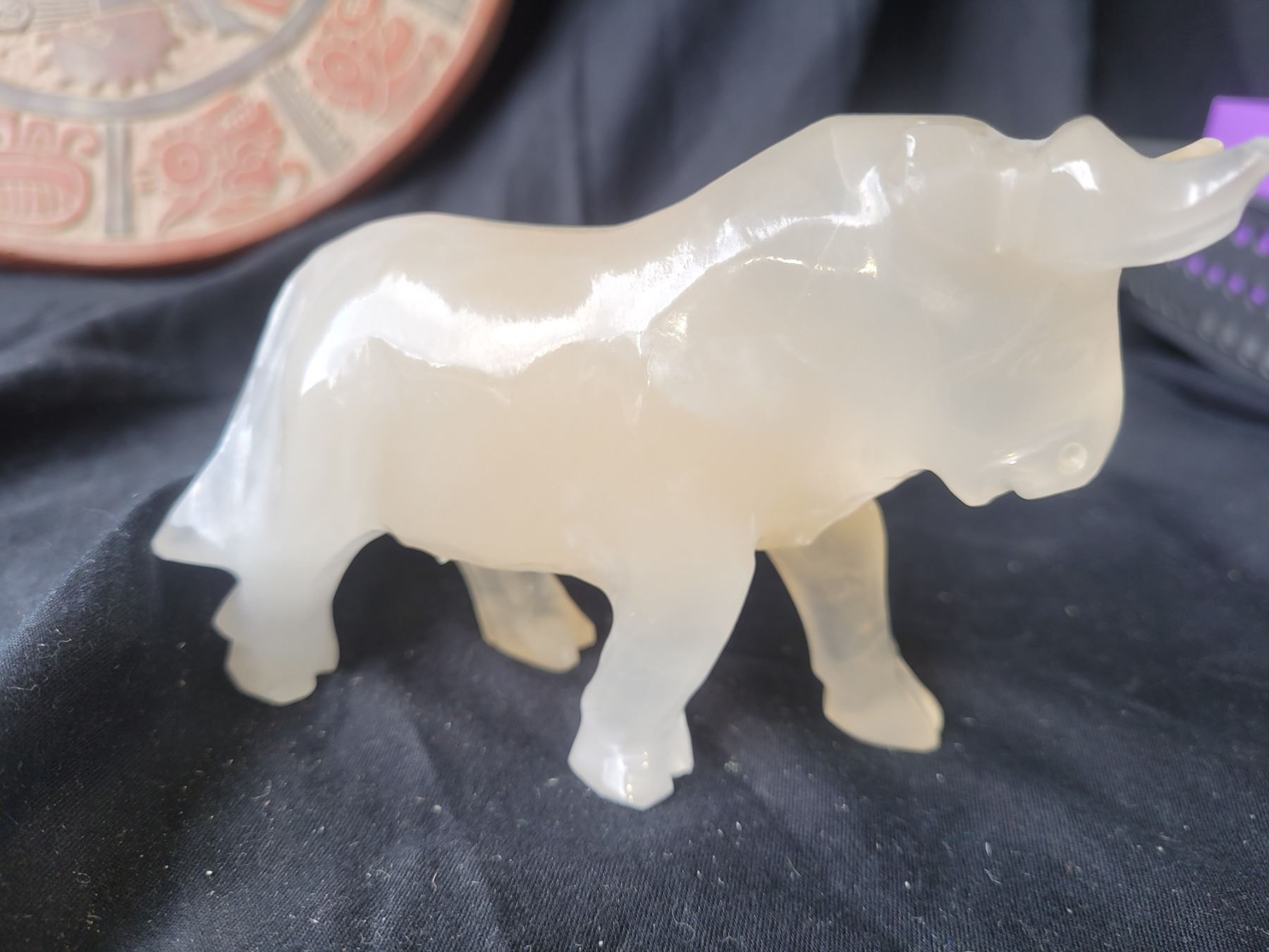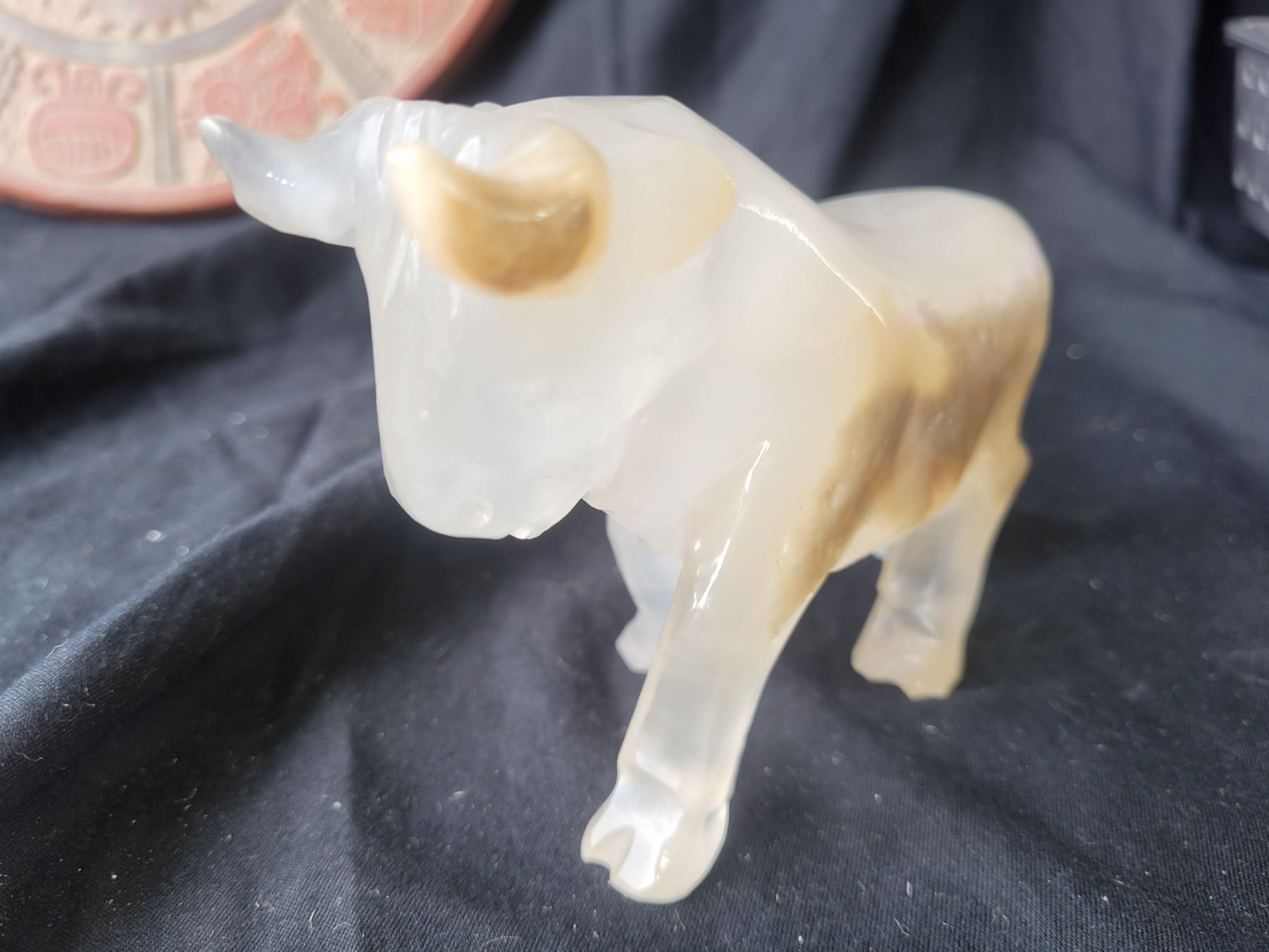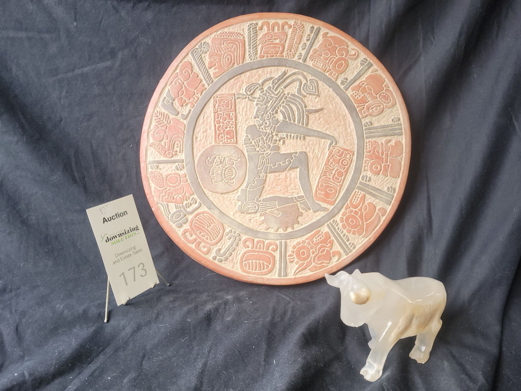 12" ceramic Mayan Plaque and a quartz bull. Pickup at 9 am