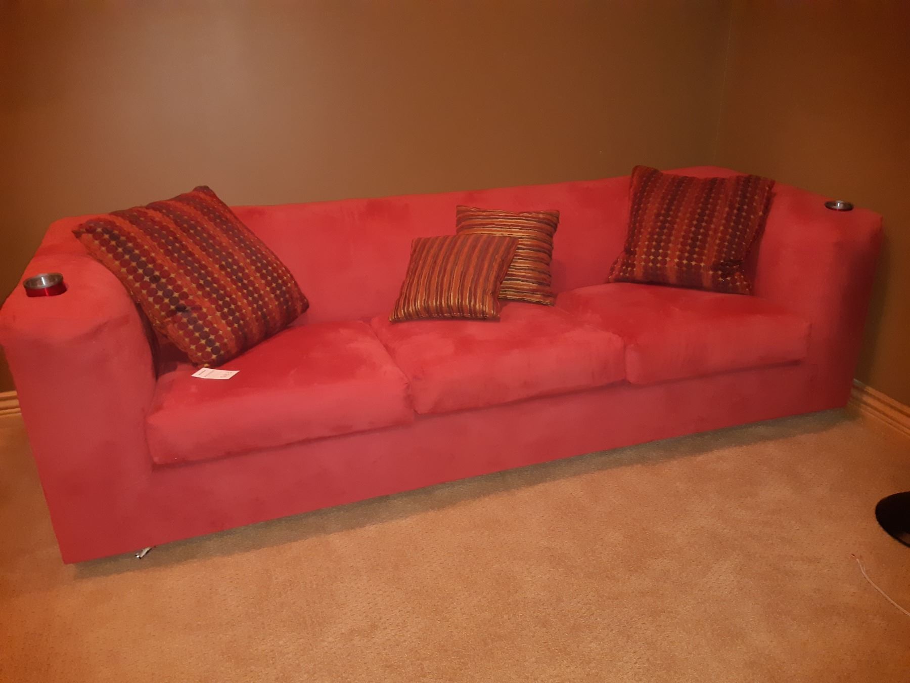 3 seater sofa 94x34x27 in burnt orange/red colour PIckup at 1:30 pm