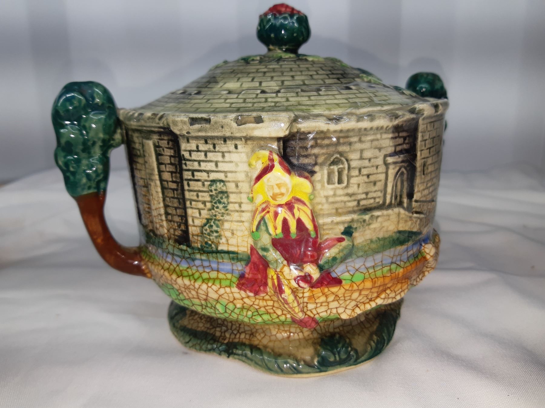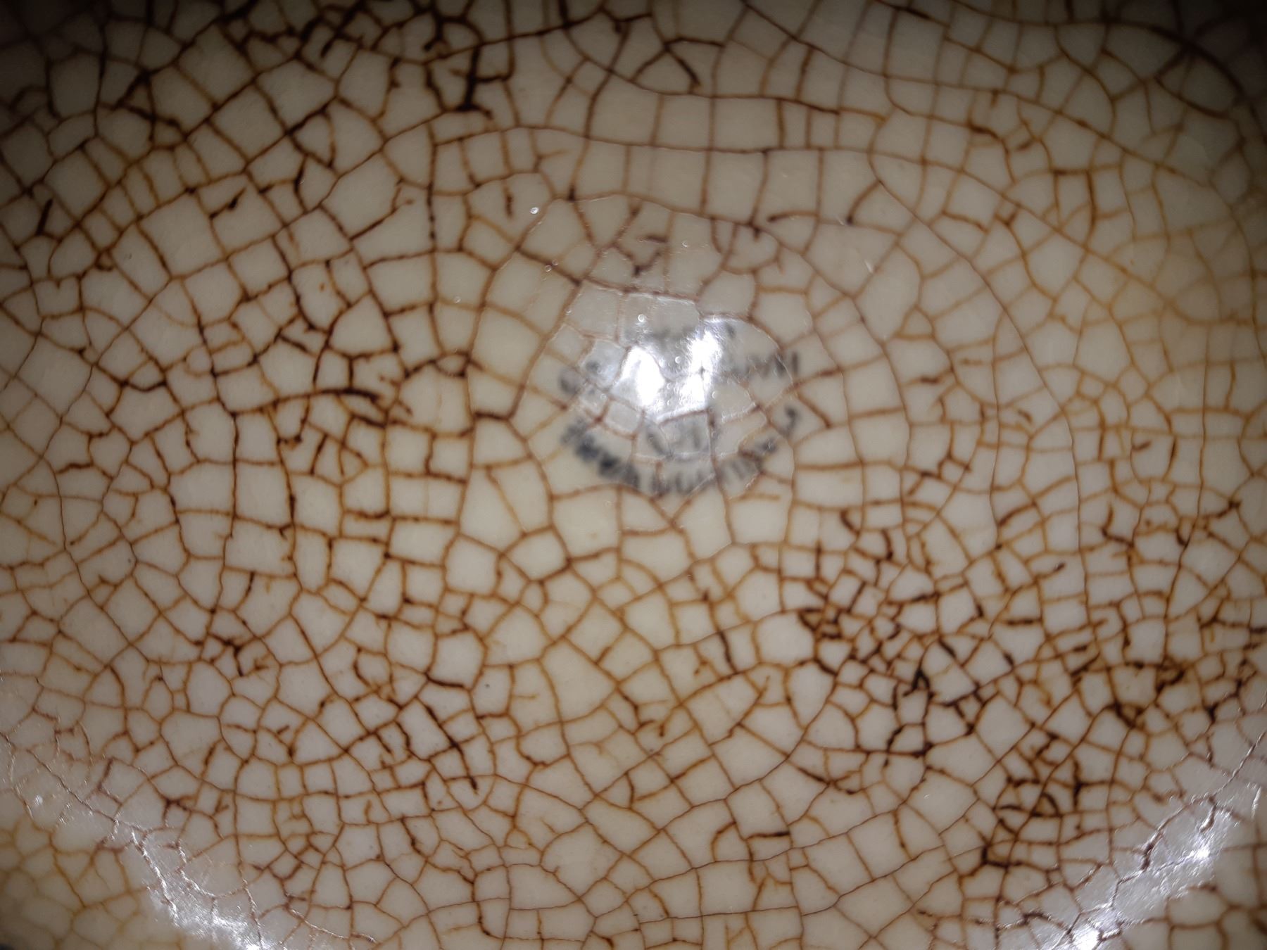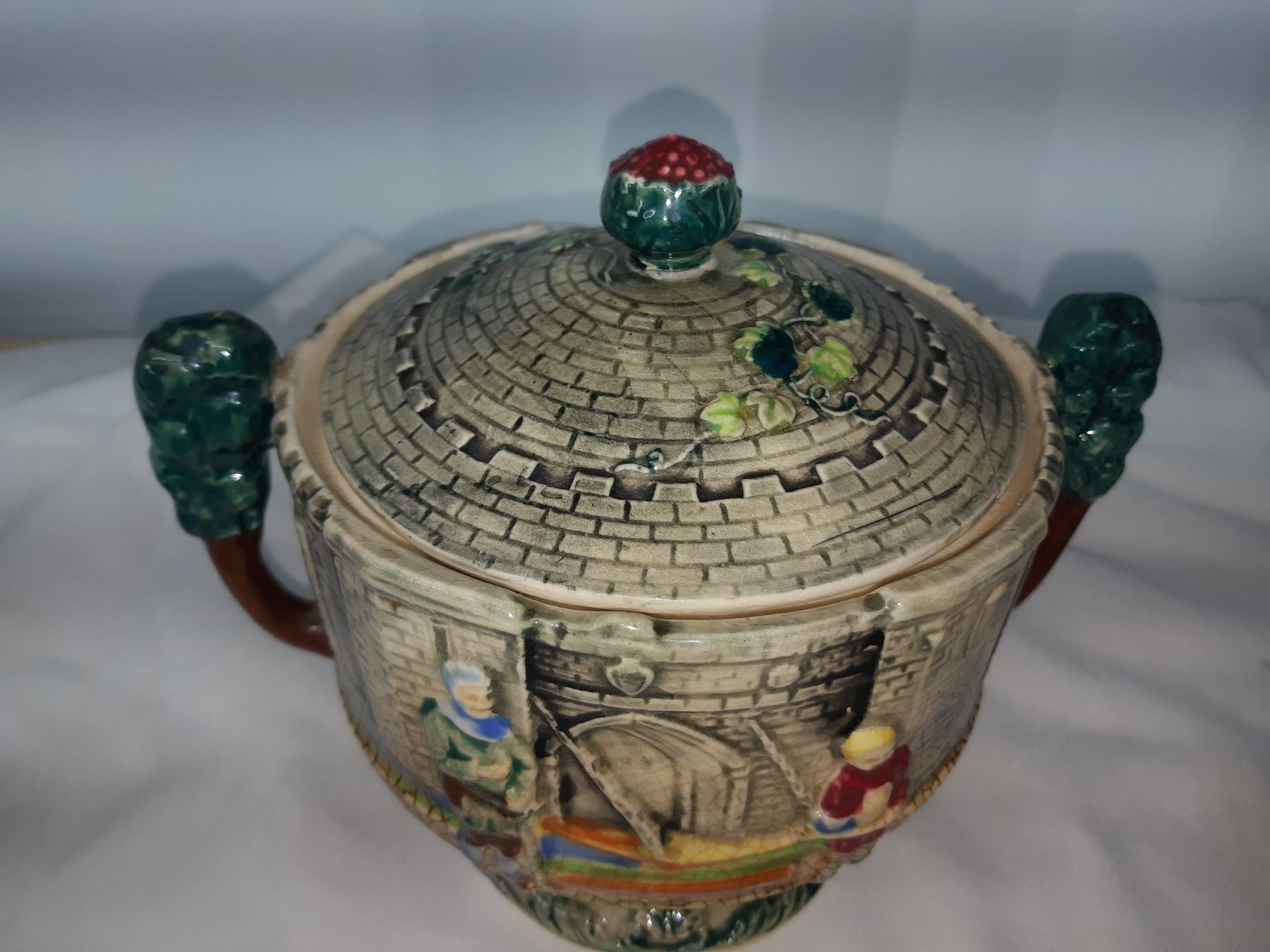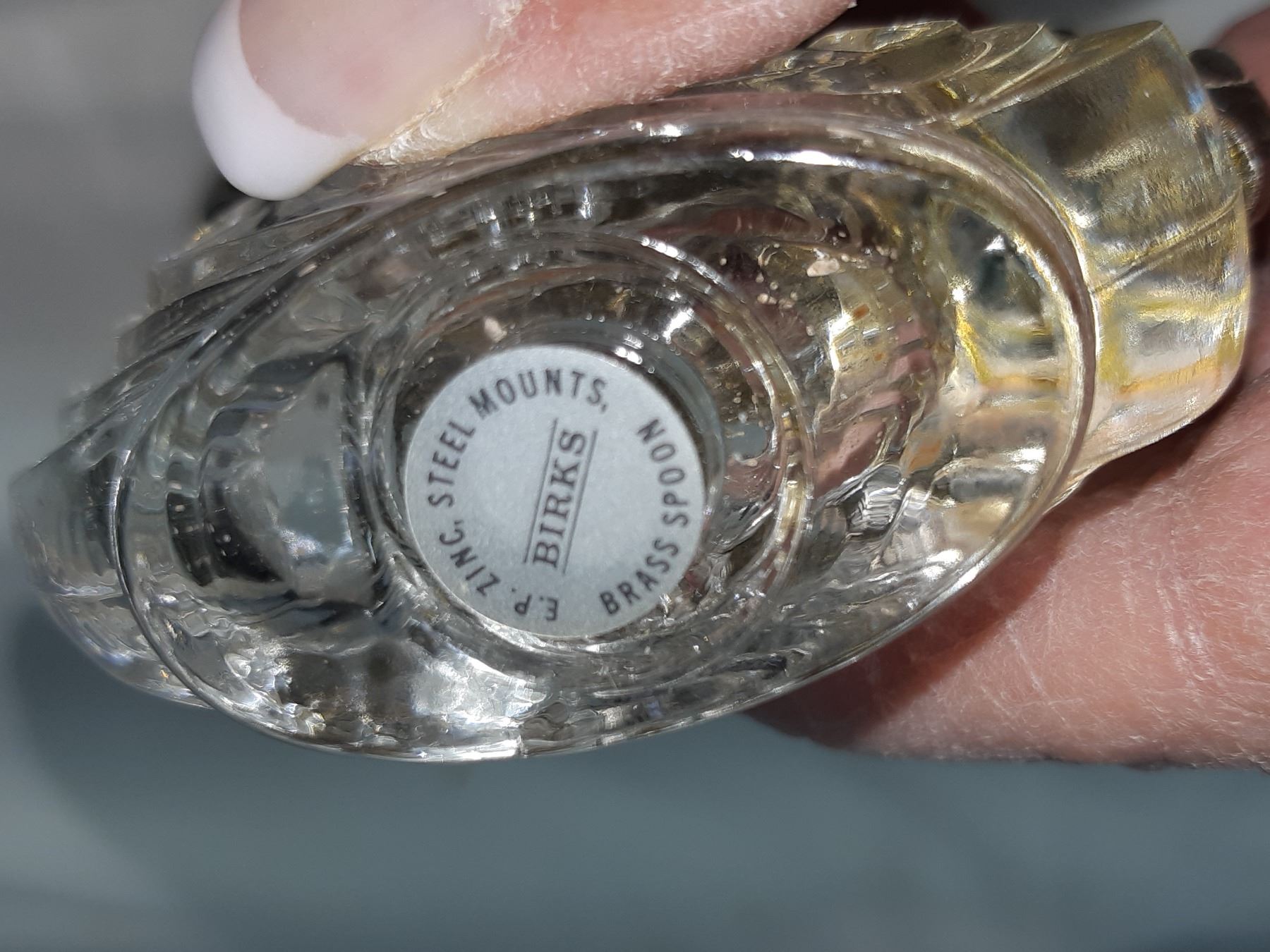 Japanese Handpainted circa 1900 doubled handled, lidded container see fissure cracks with age on bottom. 2 swans 3" cut glass with EP zink steel filigree swan tops Pickup at 9 am