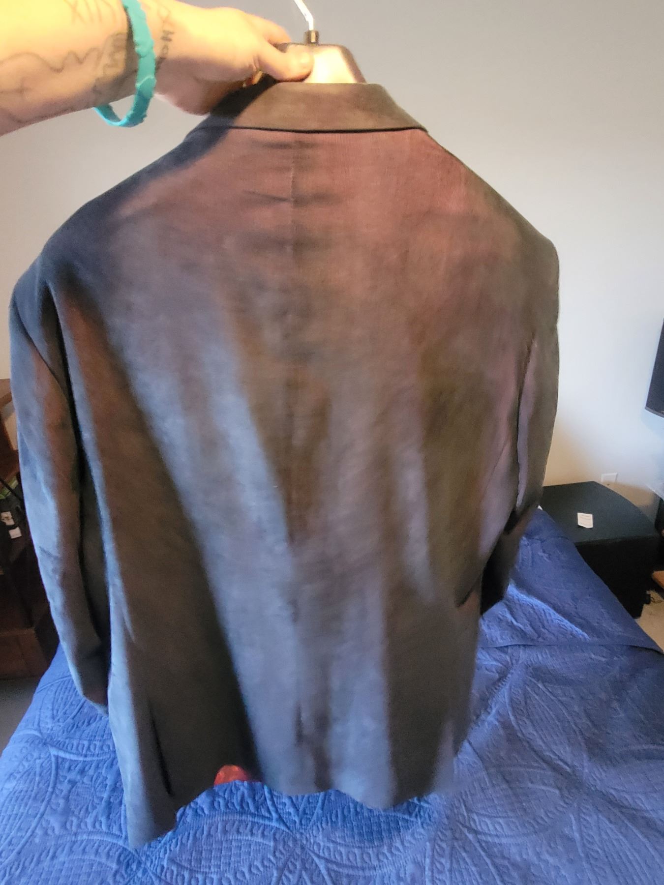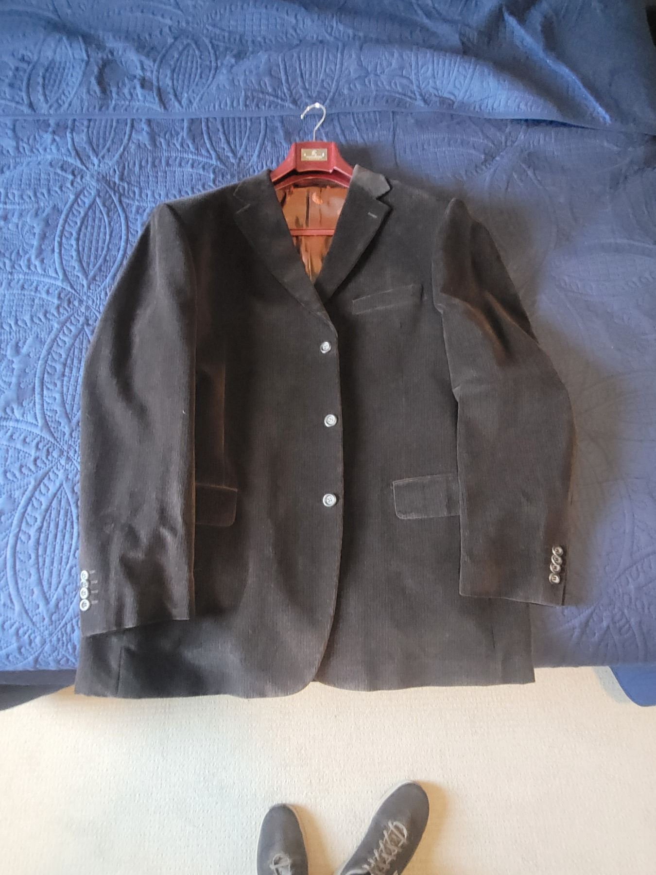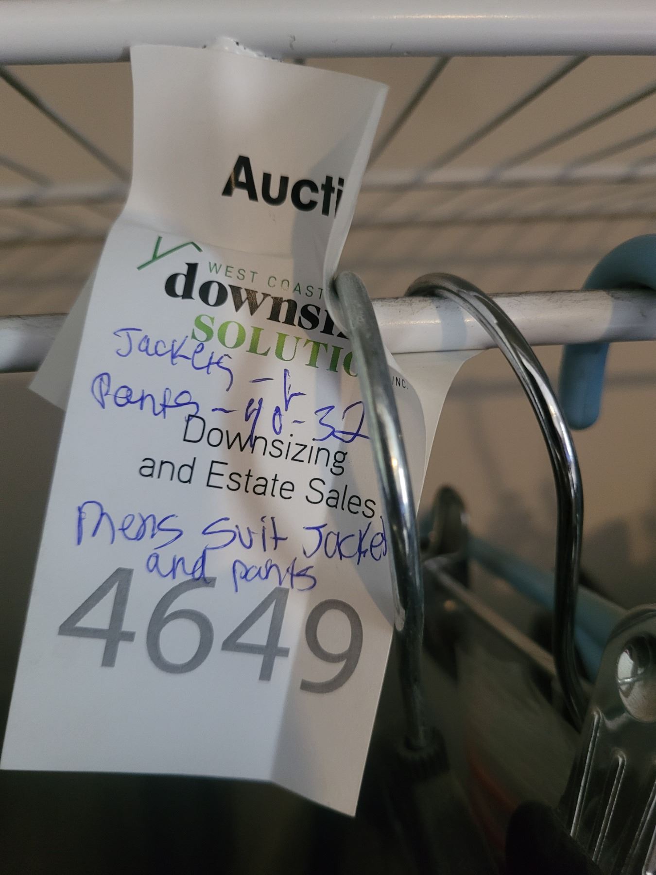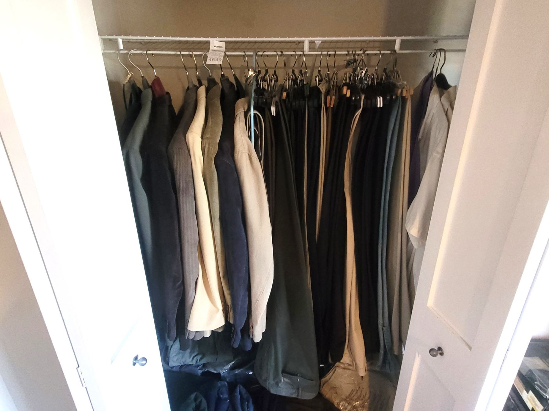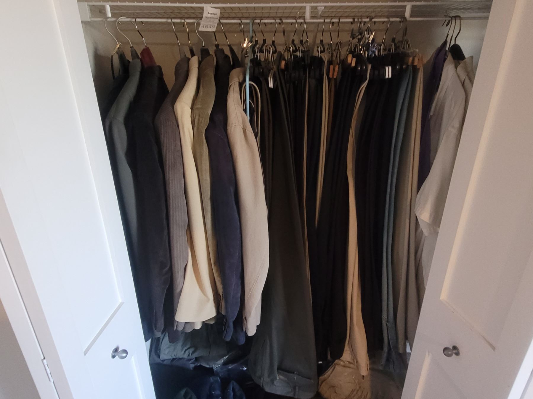 Two suits, 5 jackets, size large, shirts, 15 pairs dress pants sizes 42. Pick up 9-10