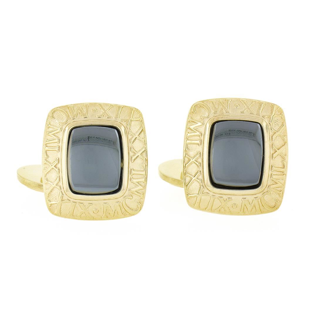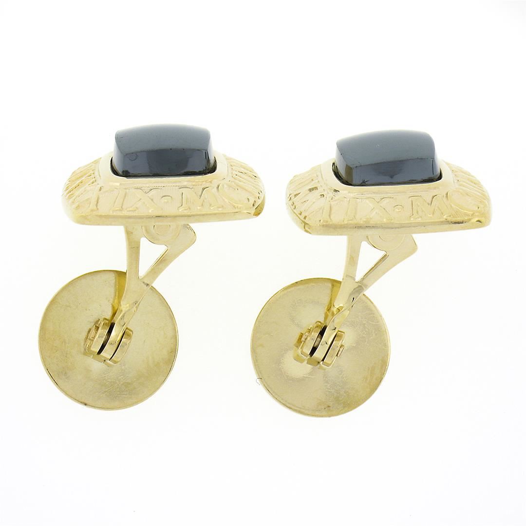 Men's Morelli 14K Gold Cushion Cabochon Bezel Hematite Roman Numeral Cuff Links