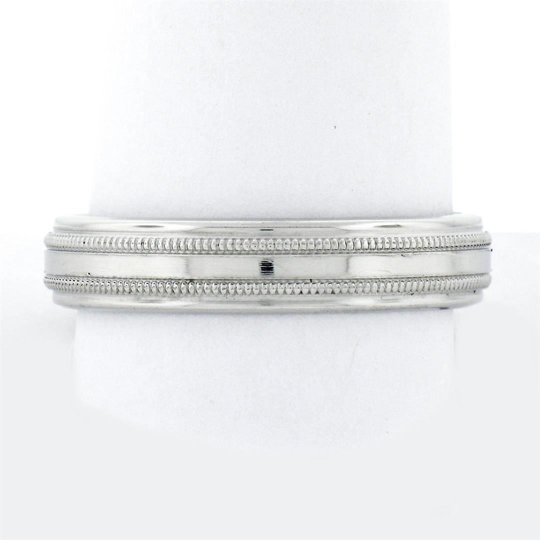An estate solid platinum dual milgrain band ring. The ring is size 11.0, weighs a total of 11.40 grams, and measures 5.0mm wide.