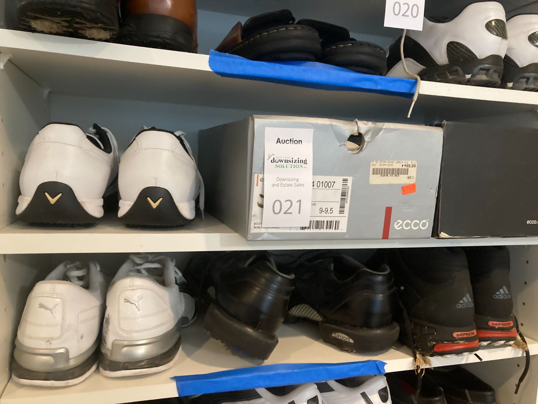 Various men’s shoes, 9.5 and 10.5, including golf shoes. Pickup at 9 am, cat. A.