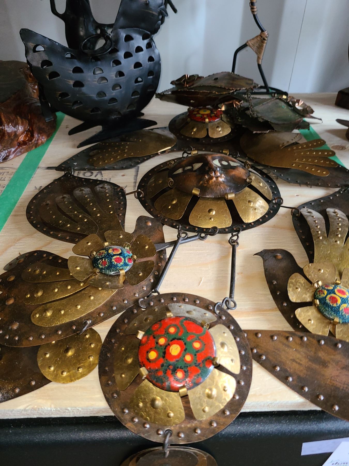 Metal wall hanging, rooster, owl art, and 2 metal candle holders. Bring packing material. Pickup 9 am.