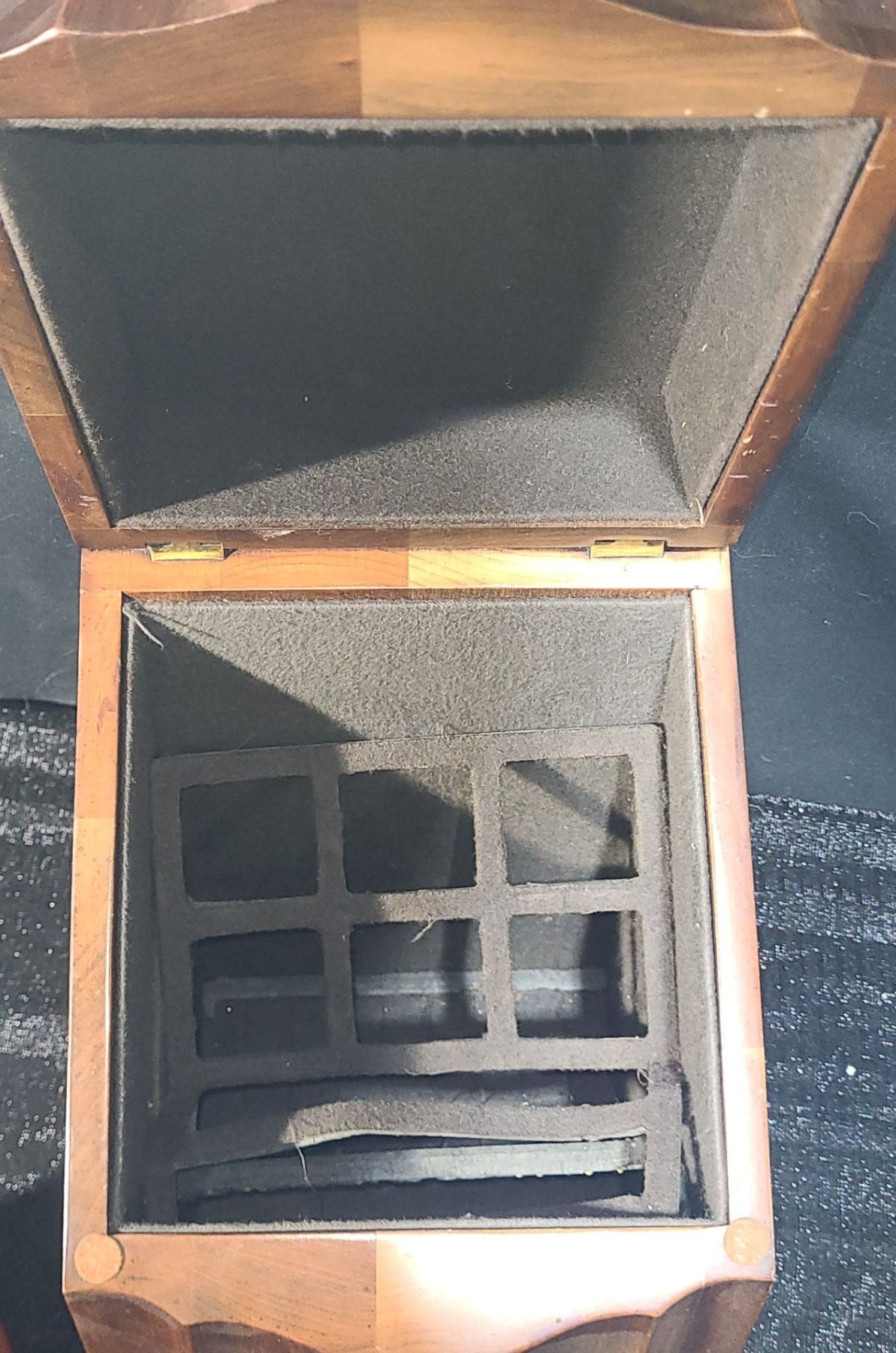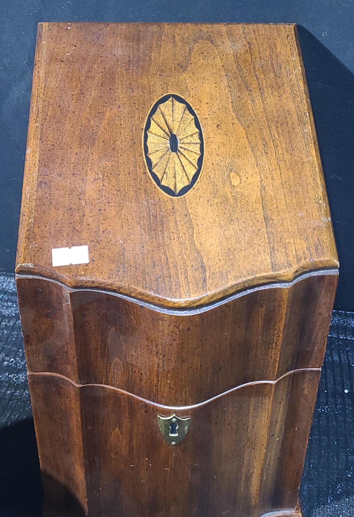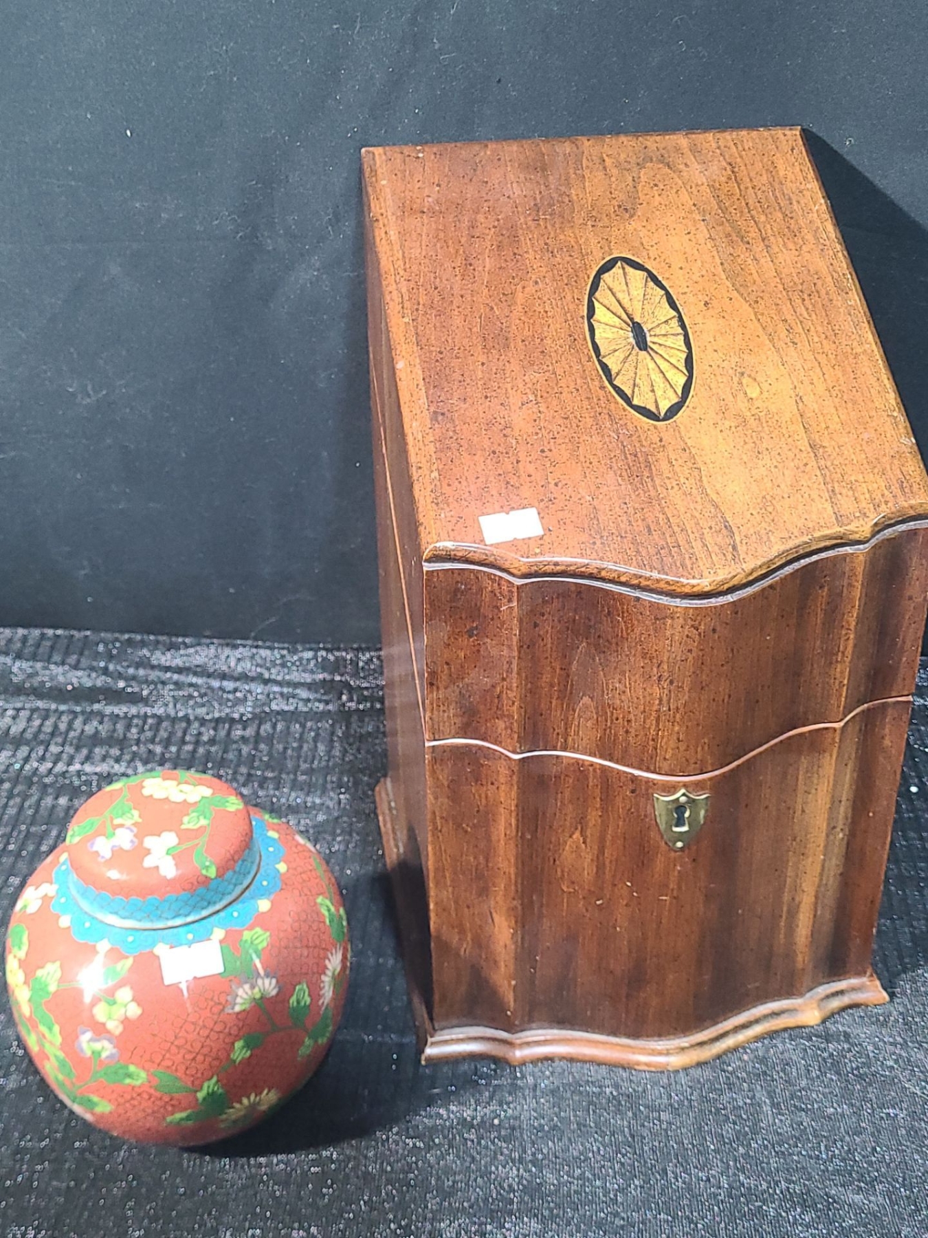 Metal Jar w/ Enamel Finish 2.5" Opening, 6 T, Knife Box w/ Veneer Inlay Design 8 W, 8.5 D, 14 T