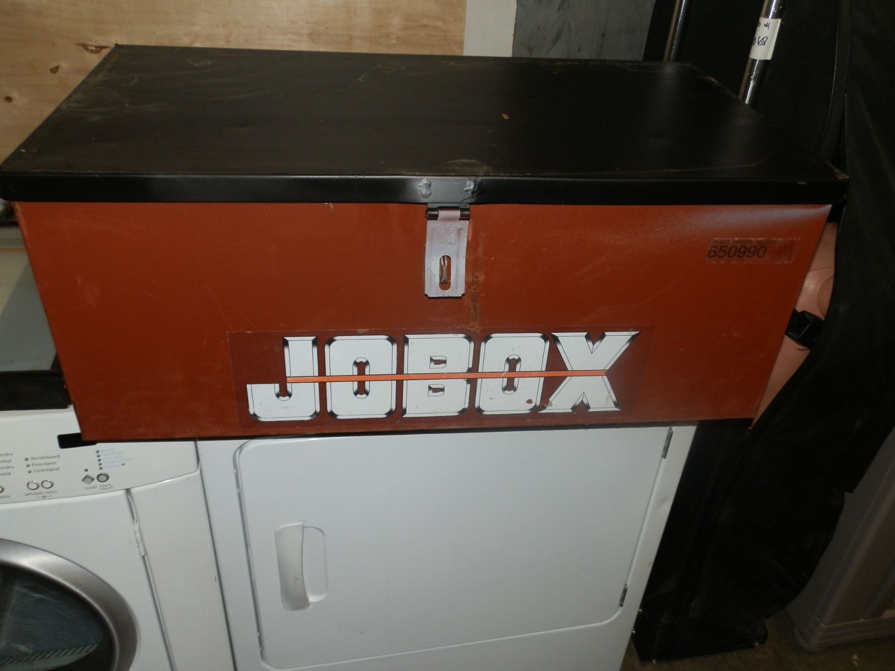 Metal Job Box 30 1/2" W 12 1/2" H 16 1/2" D, in good condition....used