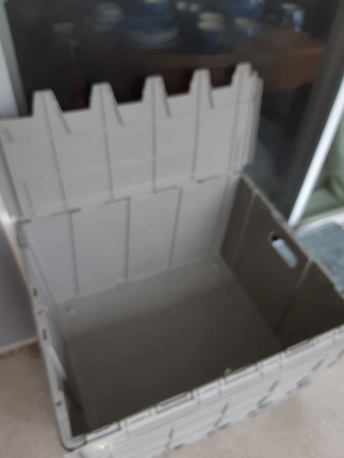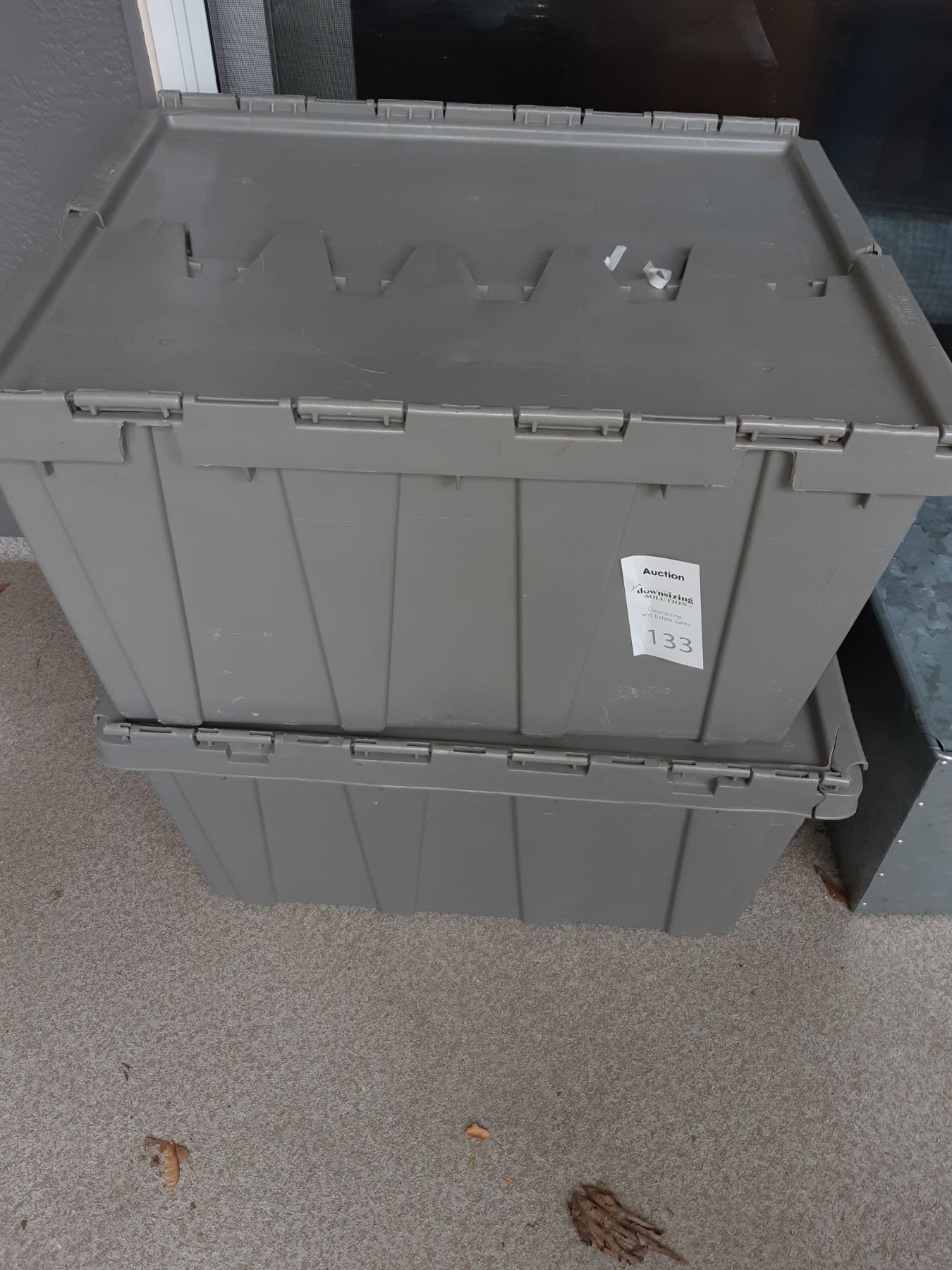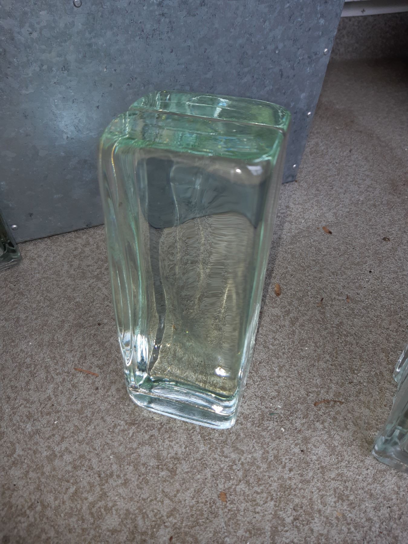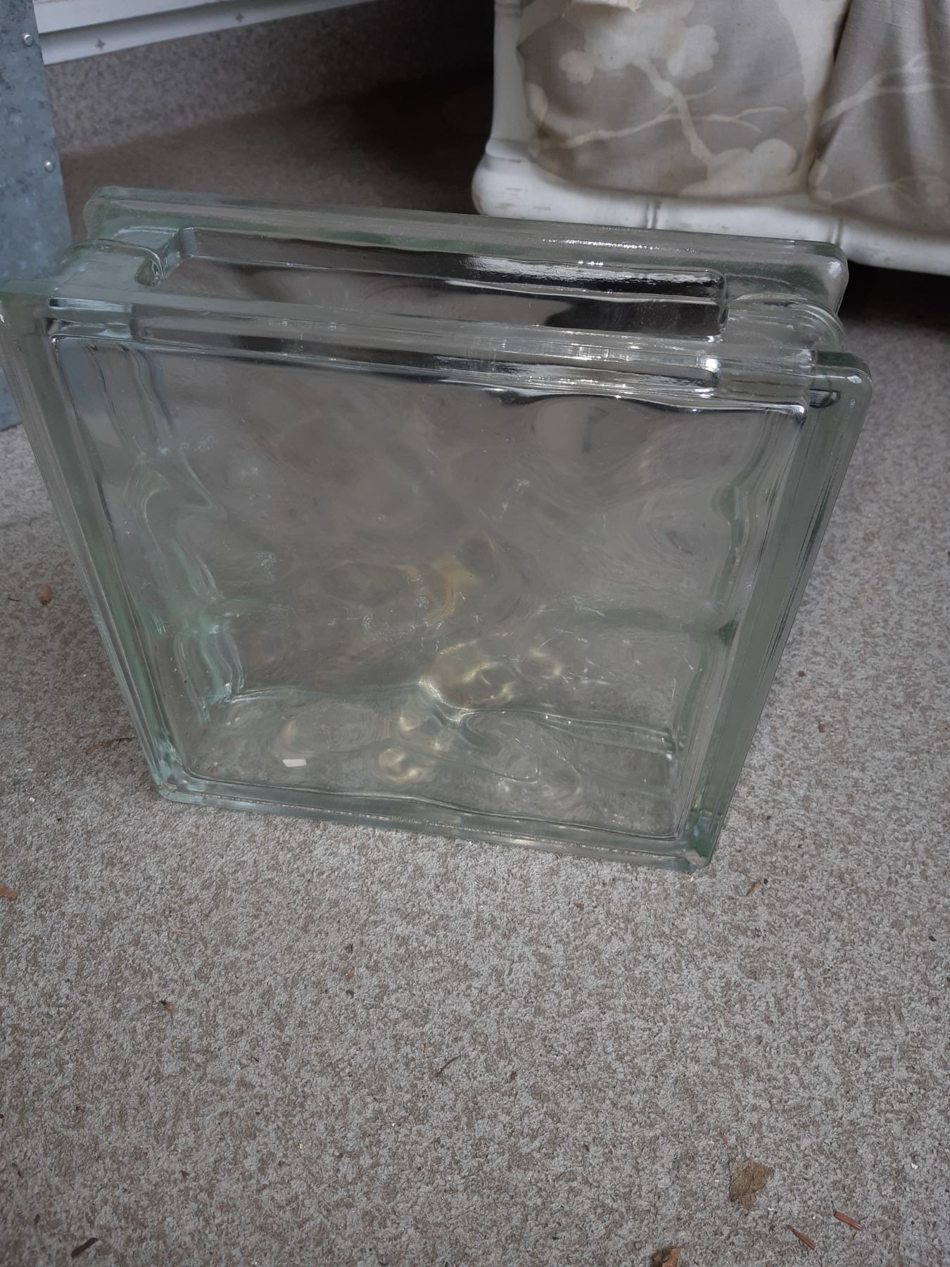 Metal storage container with lid 20x20x15 and 2 plastic storage containers, glass blocks pickup at 11 am