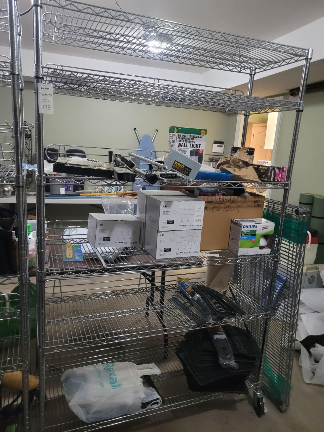 Adjustable metal shelving, includes 2 extra shelves. 43x18x77 Pick up 11:30-12:00
