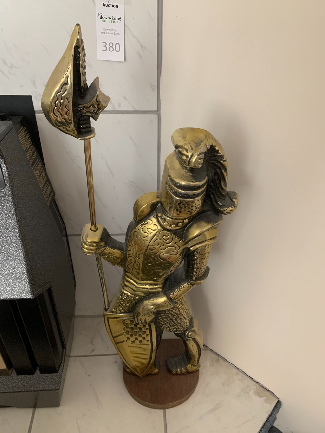 Metal statue 31 with shield and Lance heavy pickup at 10 am