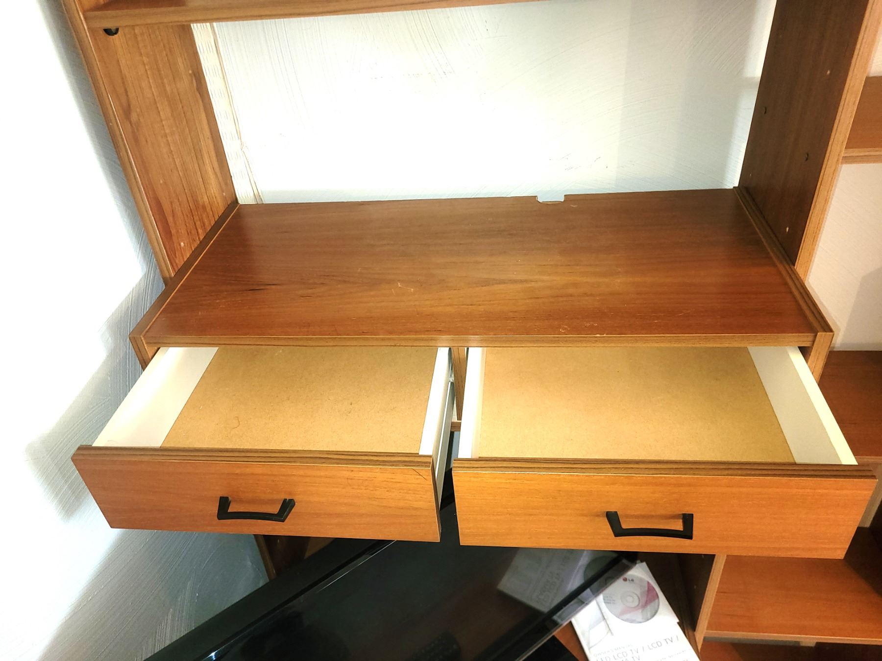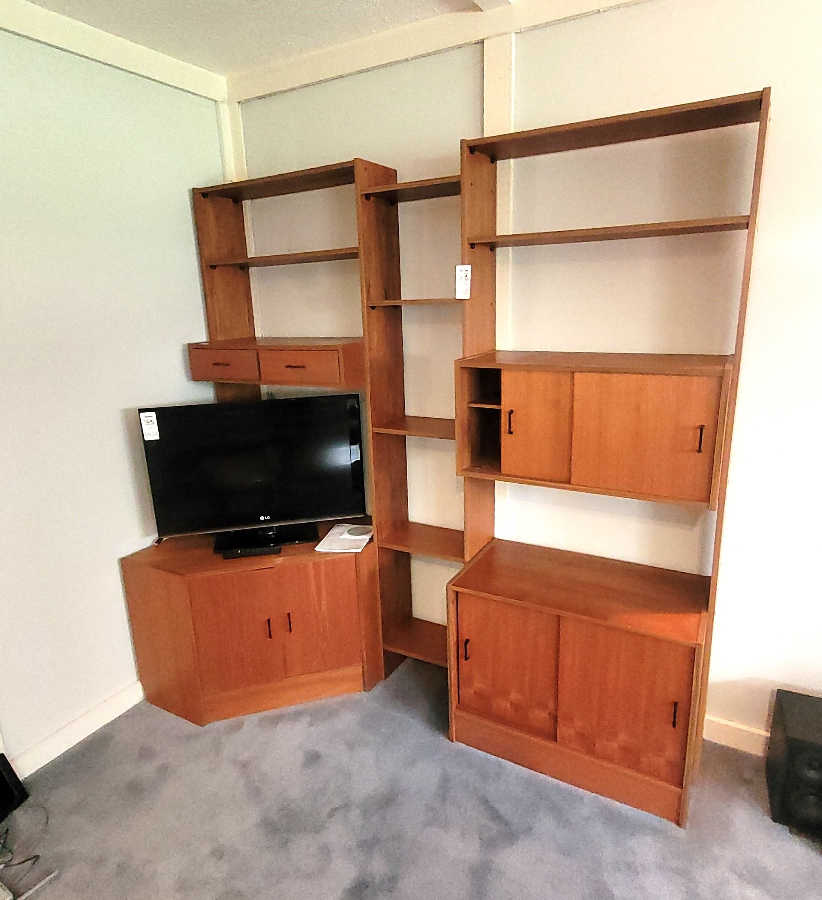 Teak unit with drawers, cupboards and shelving 78x31x78 bring tools to dismantle.Contents not included. Pickup at 11 am