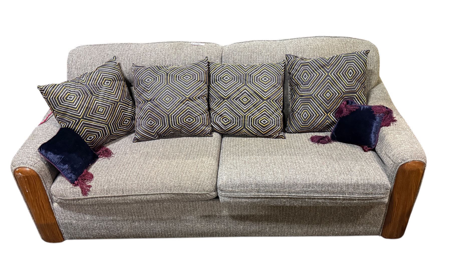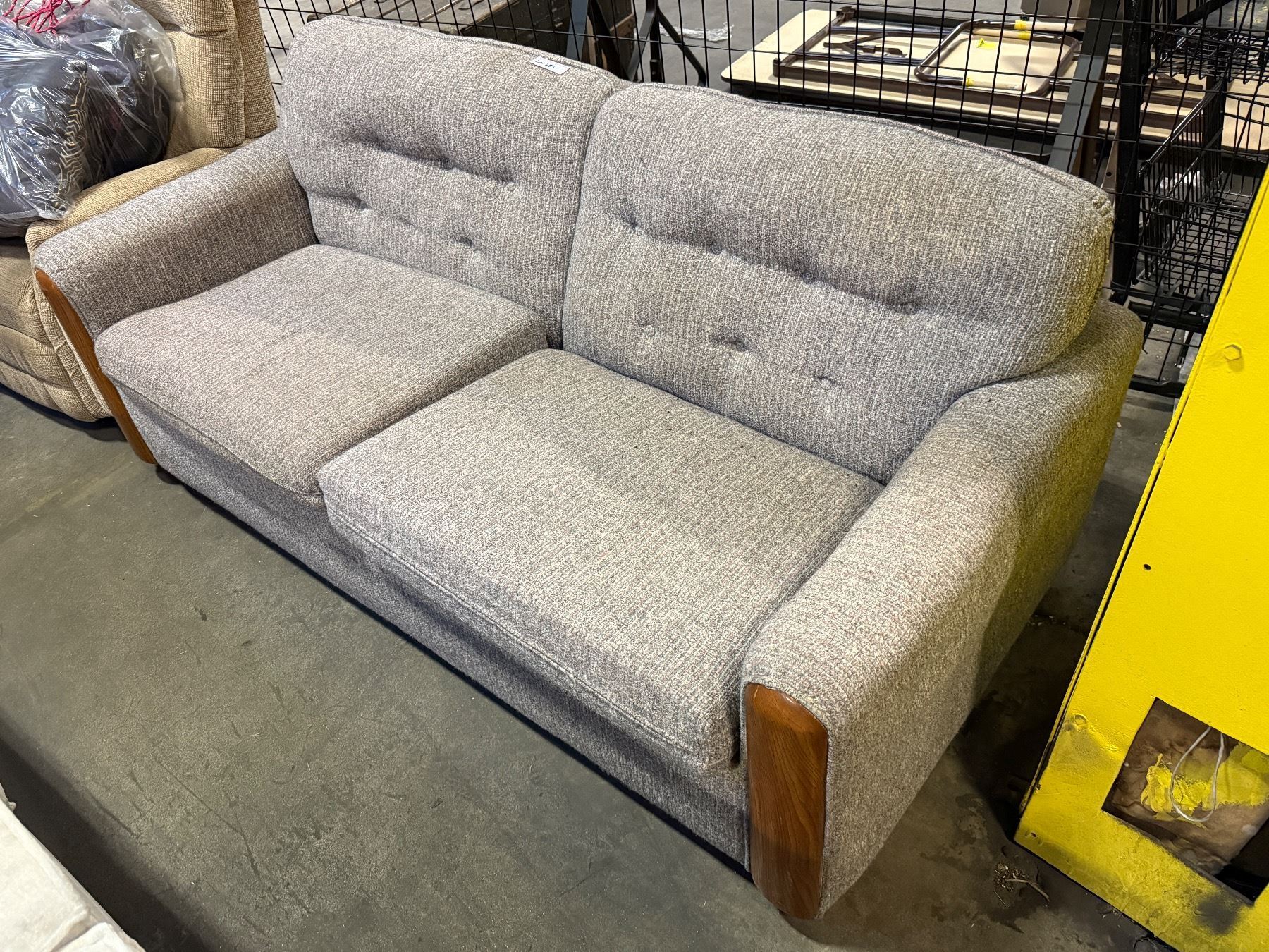 Mid Century style grey fabric love seat sofa - approx 6ft x 34" x 31" H