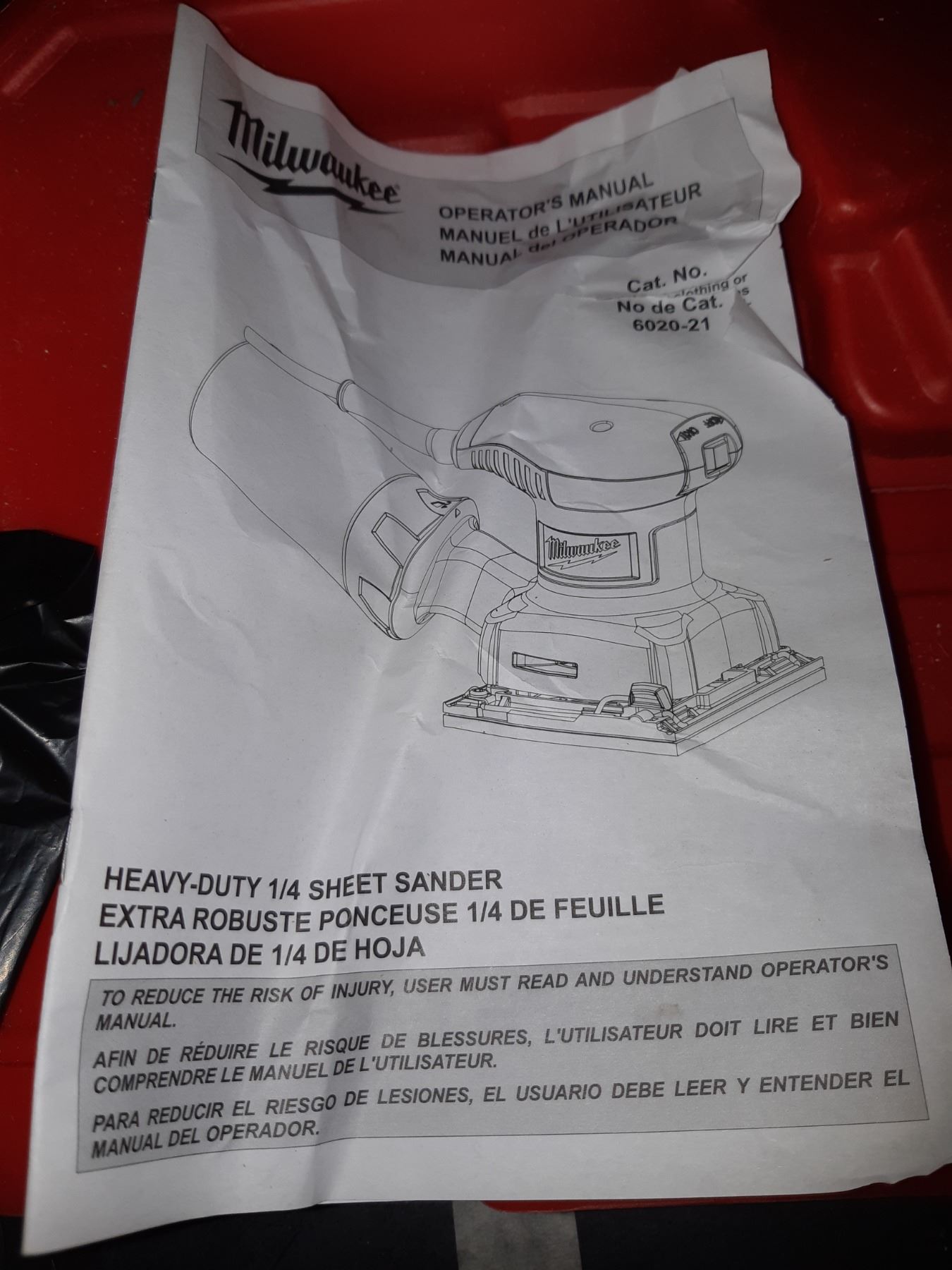 Heavy duty 1/4" Sheet sander in case. Pickup 9-11 am
