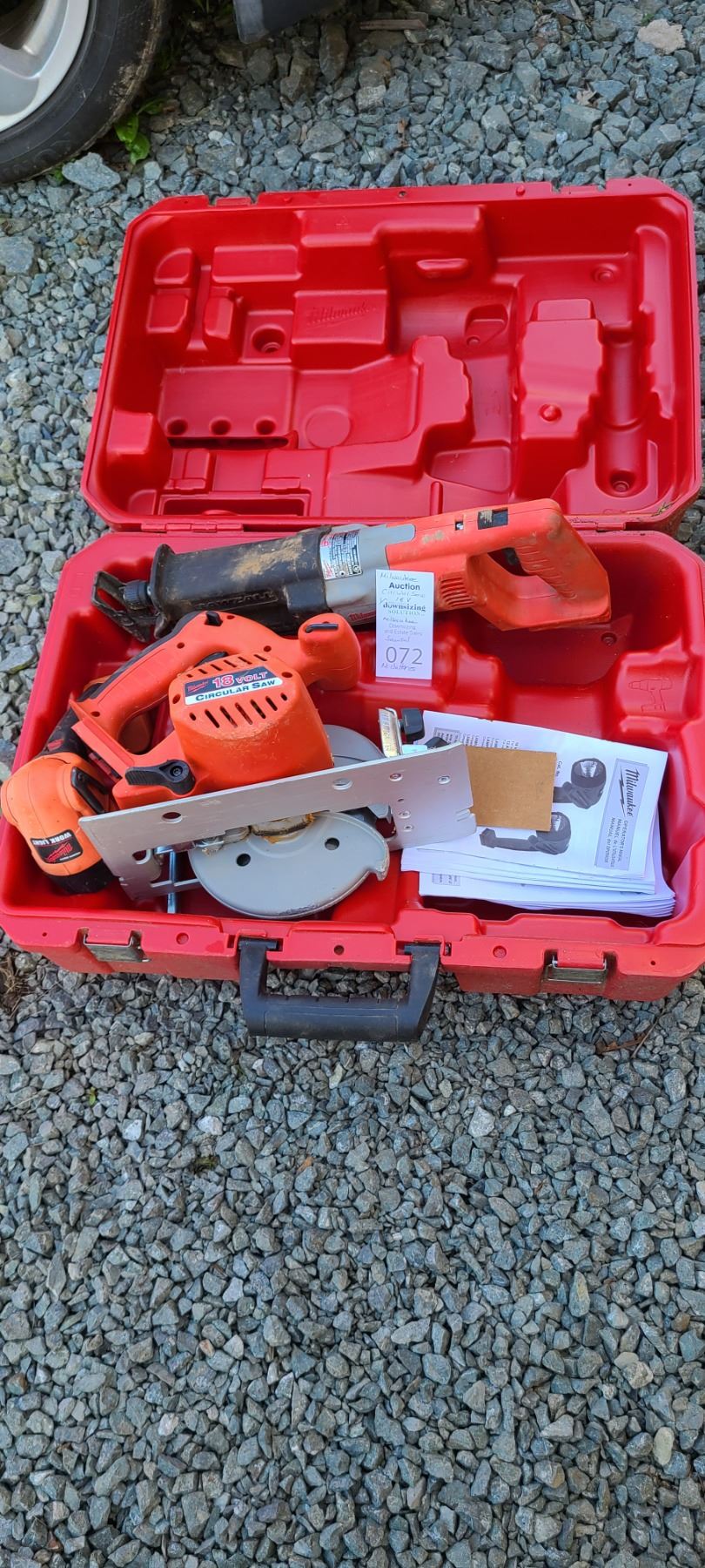 Sawzall, 18 Circular Saw, Torch, Battery & Charger untested. Pickup at 11 am