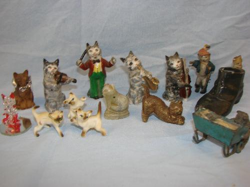 Miniture cat collection, 14 cats total, some are Dresden Germany