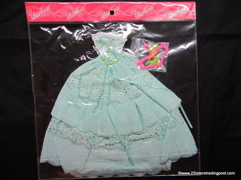 Comes complete with matching shoes and a heart shaped Barbie hanger. Gown will fit most