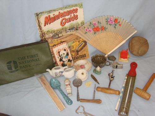 Asst. misc. small items, adv. items, corkscrews, fans.