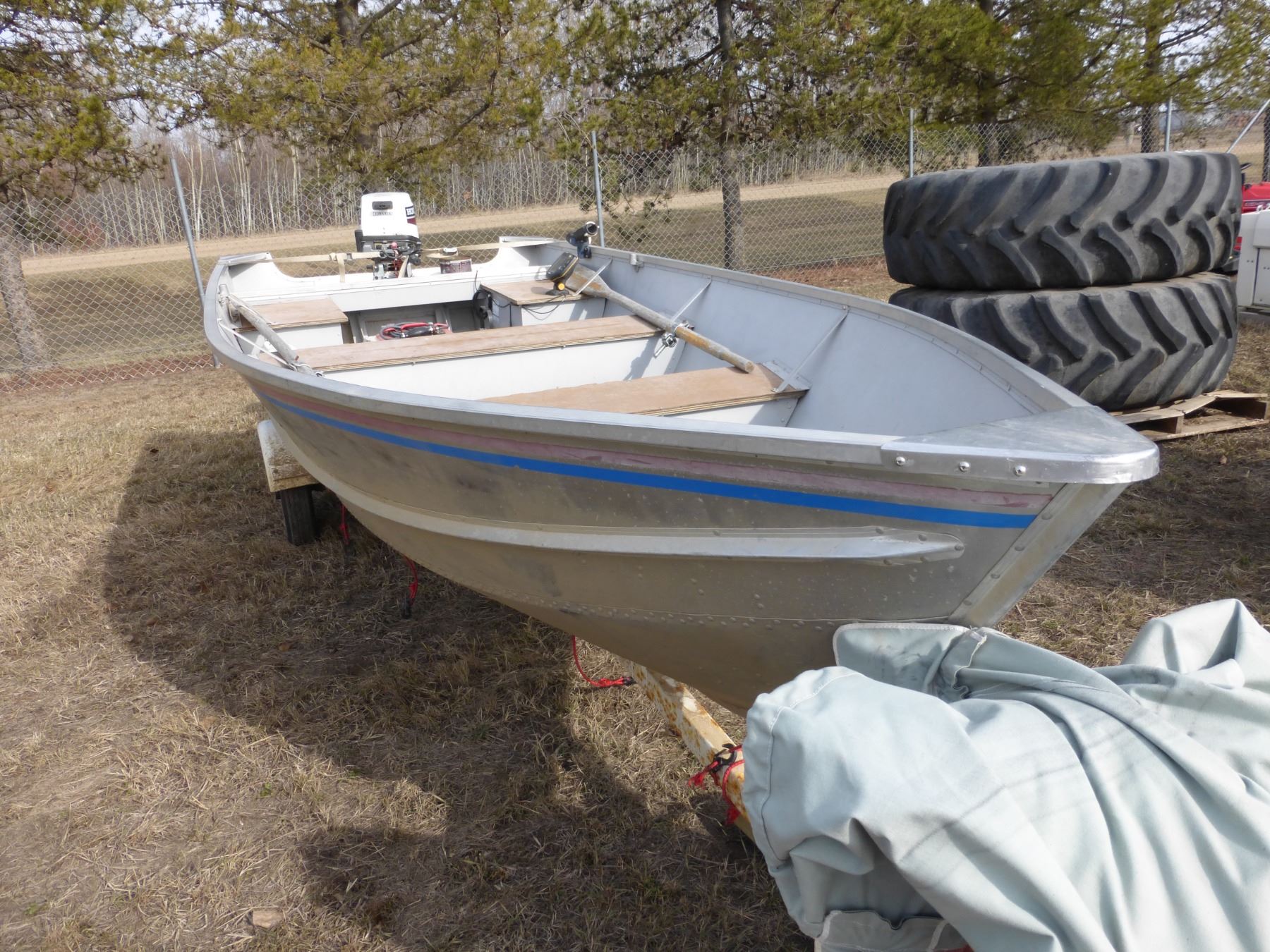 Misty River 14' Boat, Honda 15HP, c/w EZ Loader Trailer (No Serial #), Tarp, Fish Finder (Hummingbird) Boat SN.ZMR01043F990