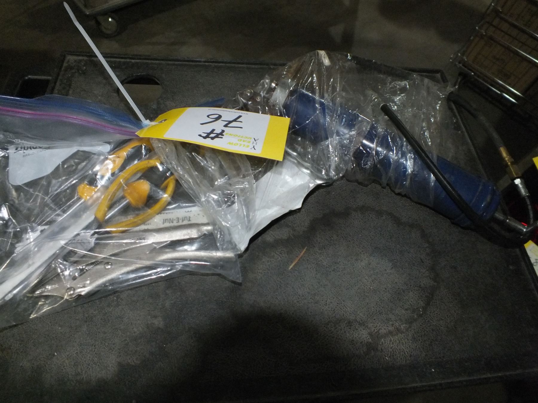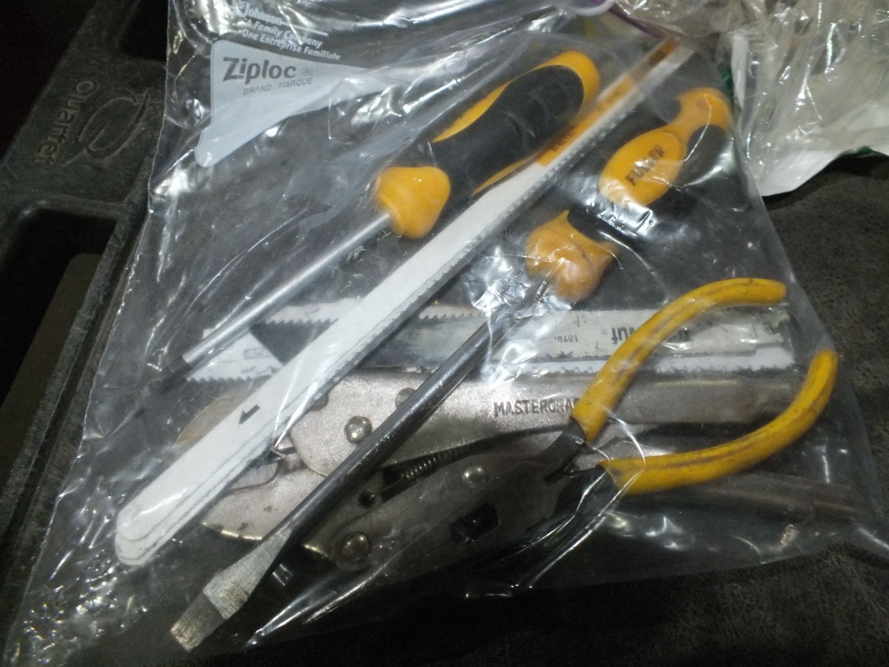 all for one money, grease gun, sawzall blades, pliers and screwdrivers...used