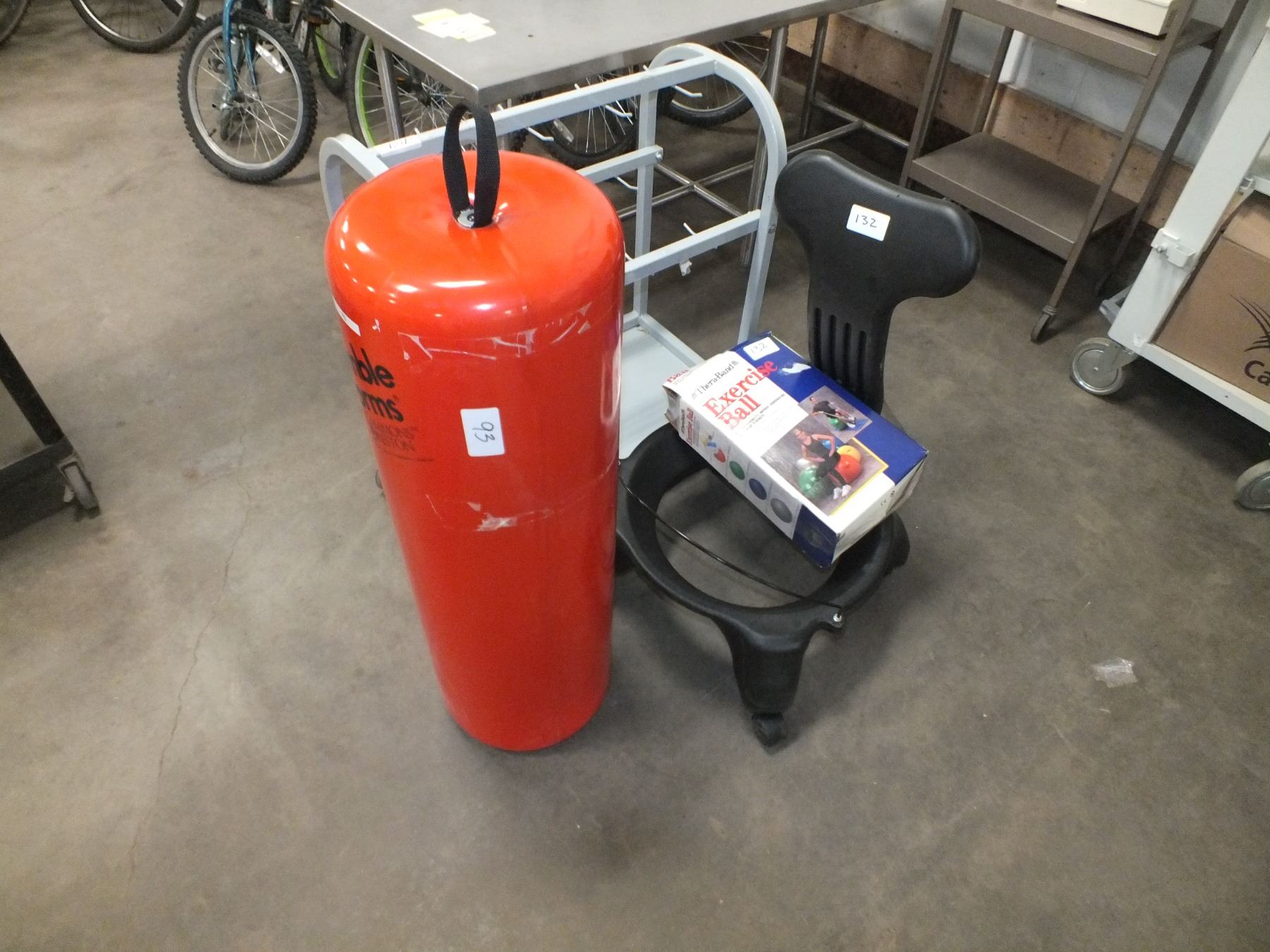 you get it all for one money, small punching bag, exercise ball & chair and a small cart...used