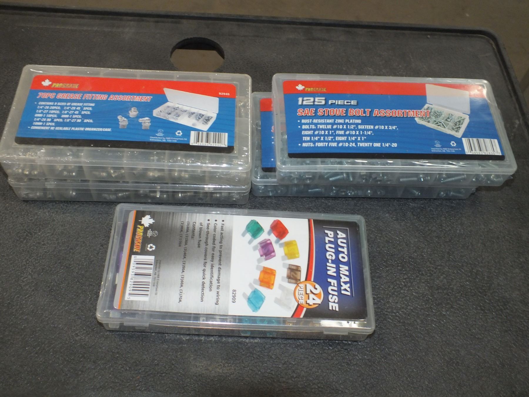 you get it all for one money, 24pc Auto Maxi Plug In Fuse Kit, 2x 70pc grease fitting kit and 2x 125pc sae stove bolt assortment kit...New